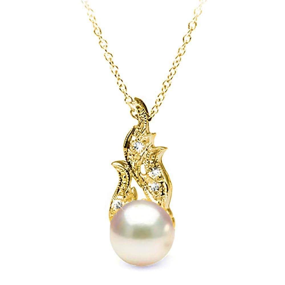 White Akoya Pearl and Diamond Aurora Pendant, 7.5-8.0mm