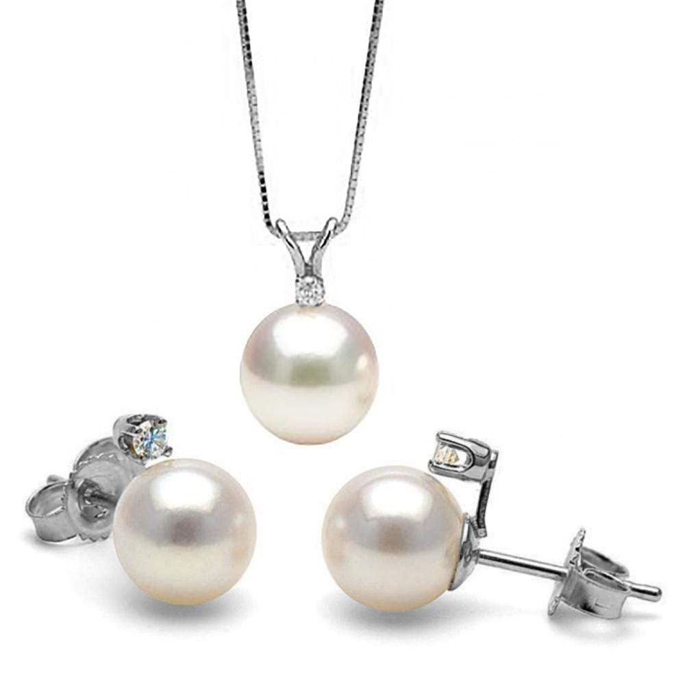 White Akoya Pearl and Diamond Radiance Pendant and Earring Set 7.0-7.5mm