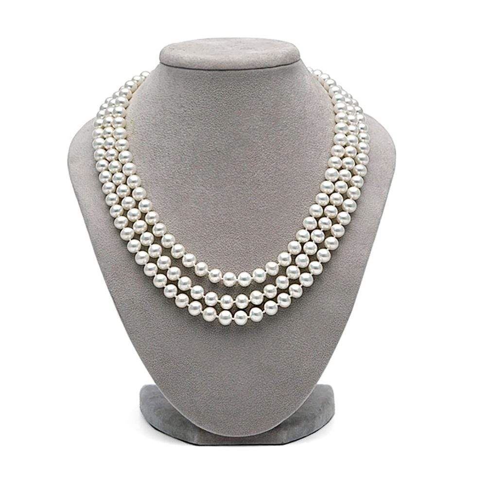 White Akoya Triple Strand Pearl Necklace, 6.5-7.0mm