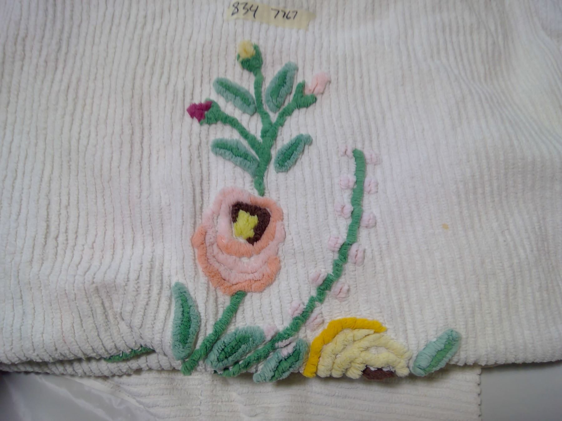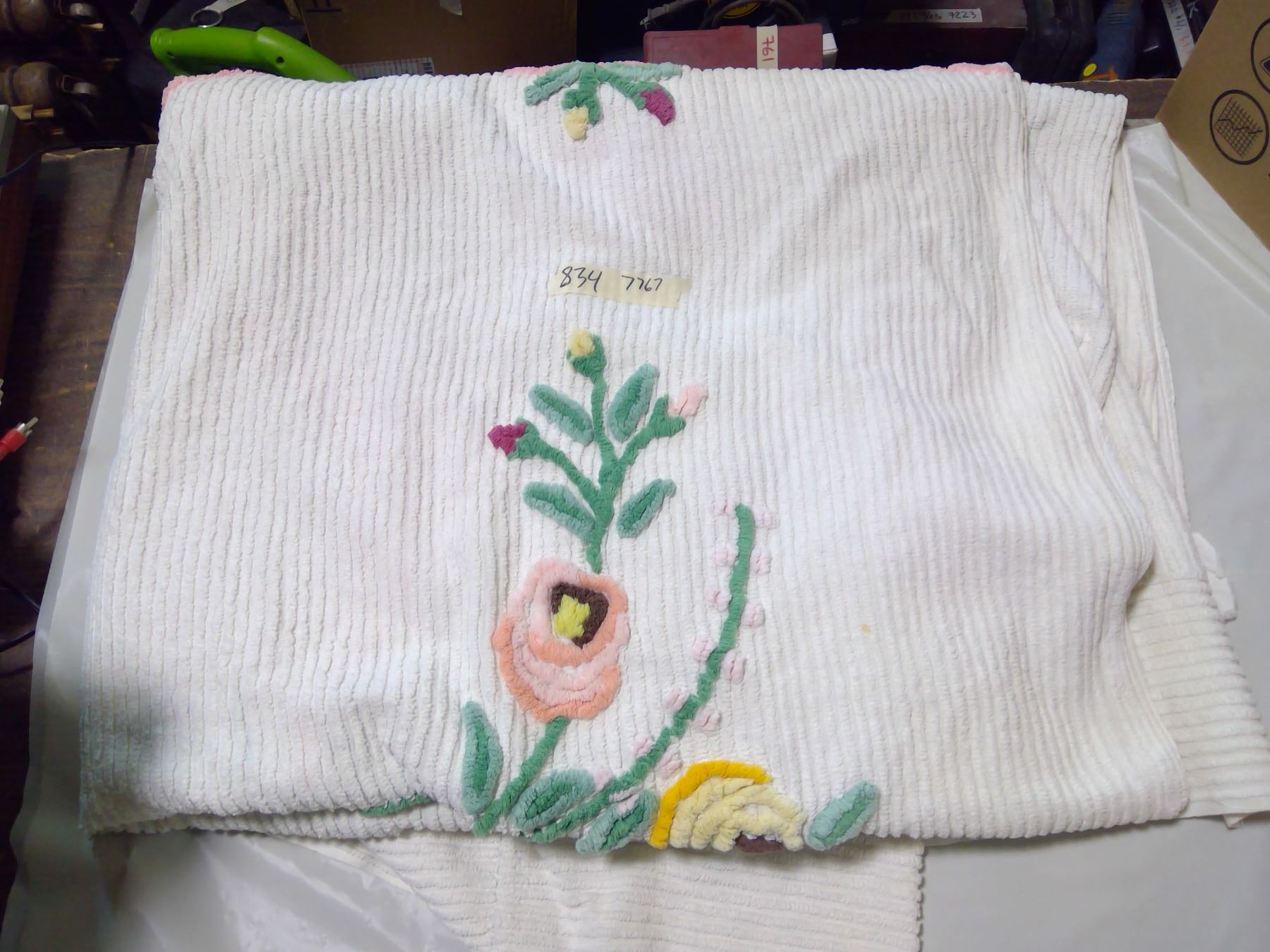 White Blanket w/ Flowers, Double Chinell - About 4x8ft.