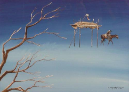 White Buffalo (aka. Bobby Hill) (1933-1984) Kiowa Gouache "His Heart is Lonely" Signed lower right 13" x 18"
