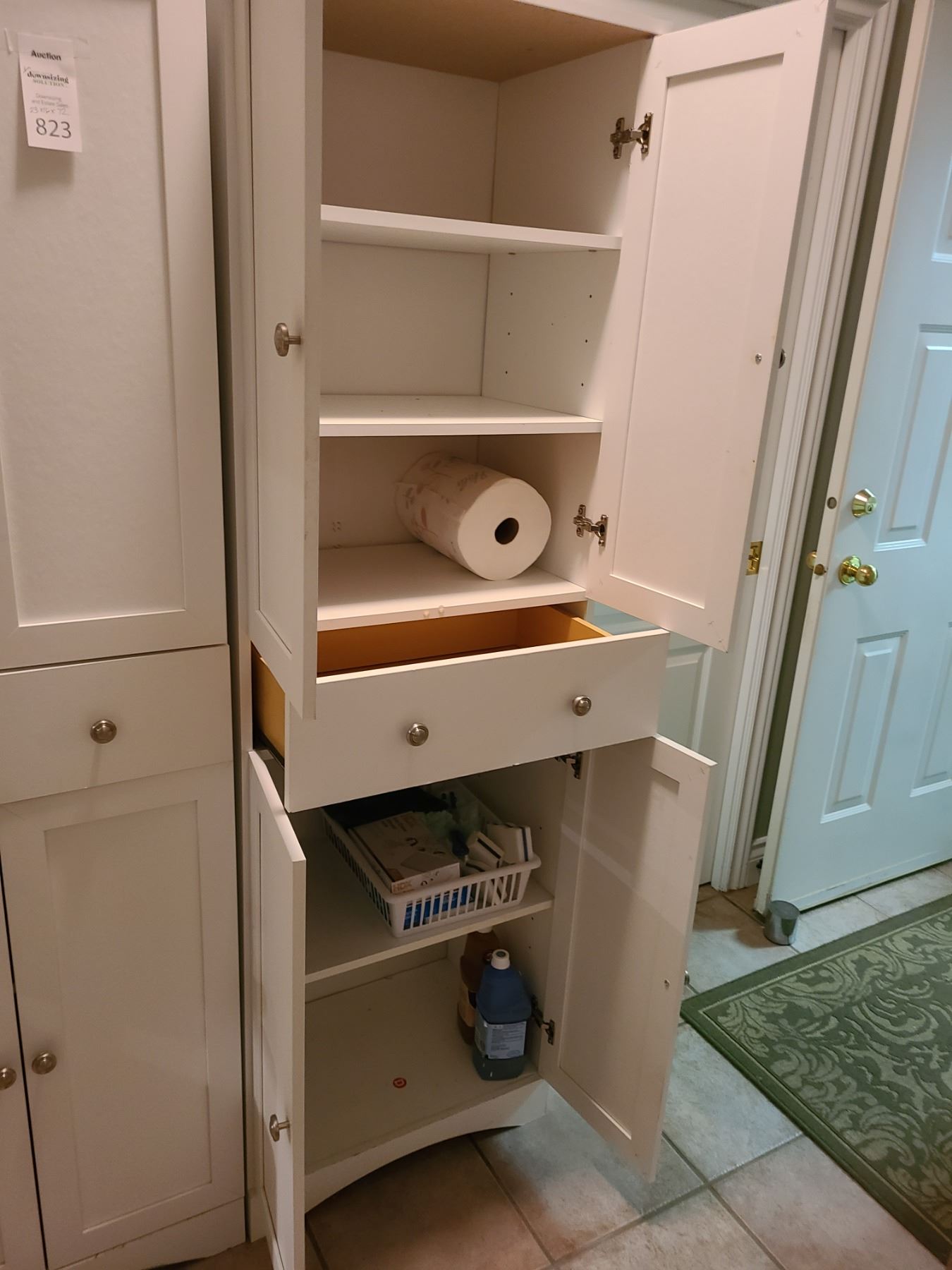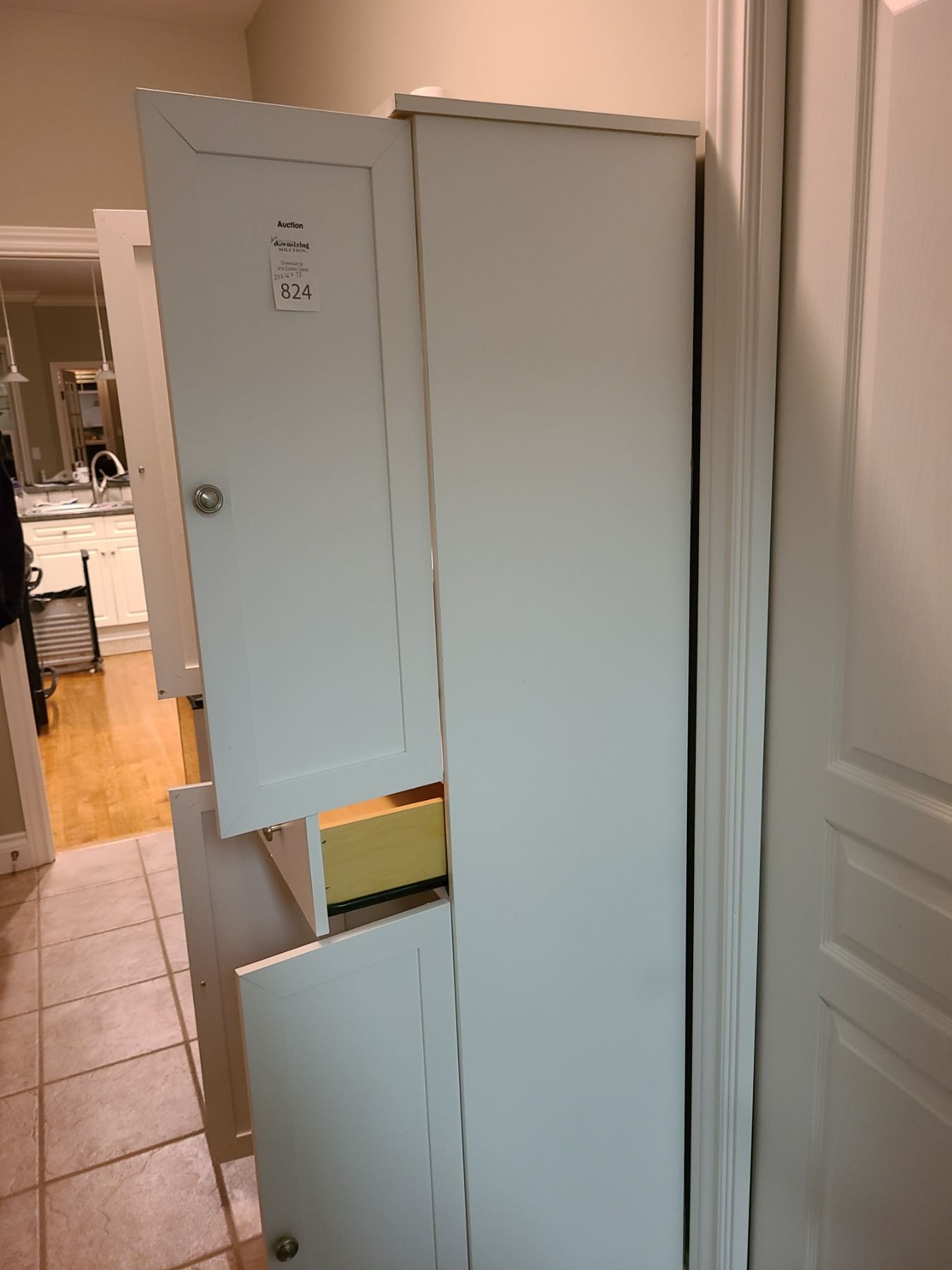 4 door and one drawer. 23X16X72 contents not included. Pickup at 11 am