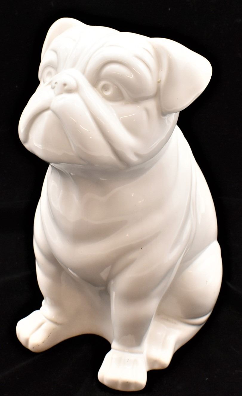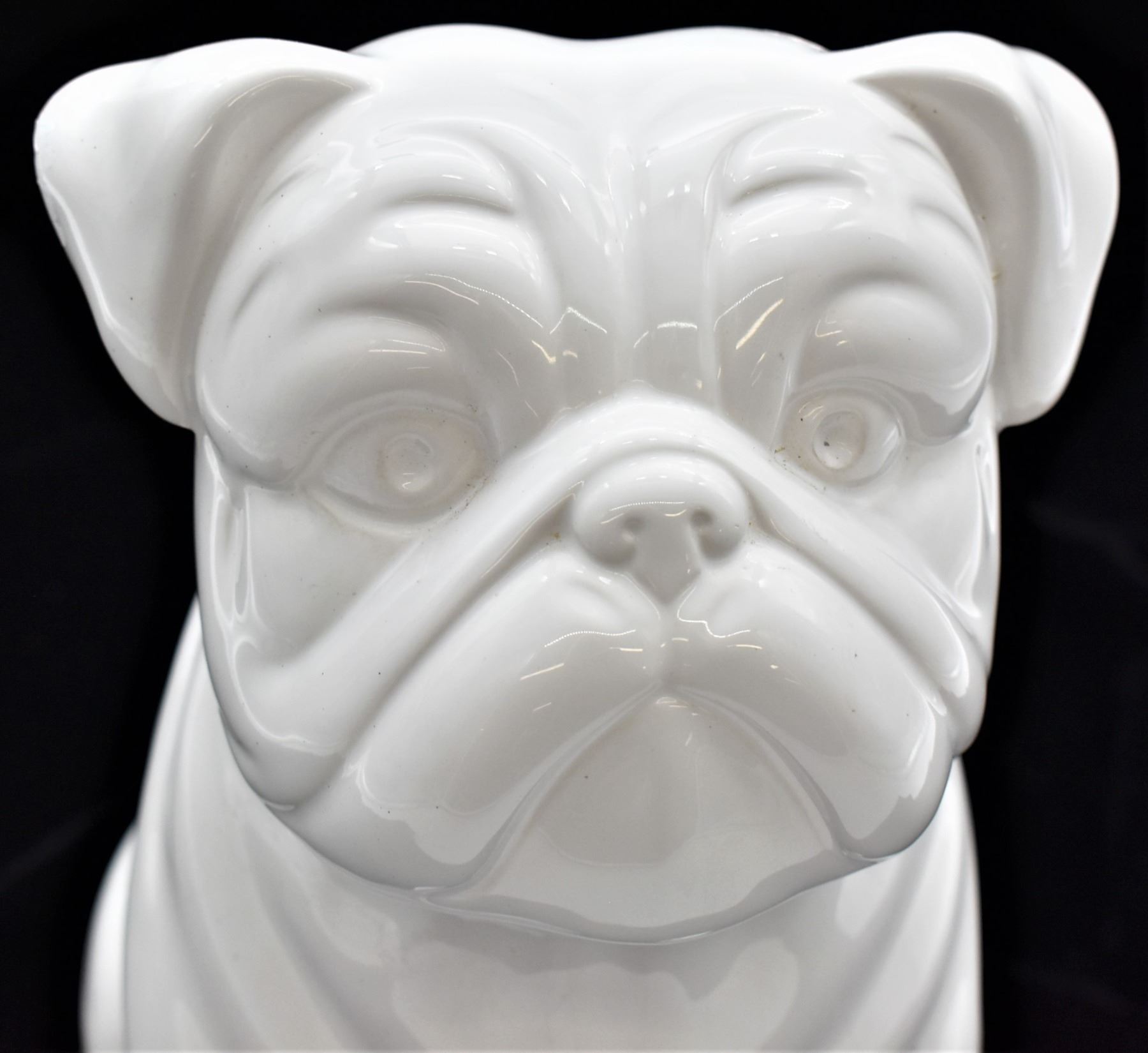 White Ceramic English Bulldog, measures 5'' x 9.5'', minor chips on tips of ears have been camouflaged