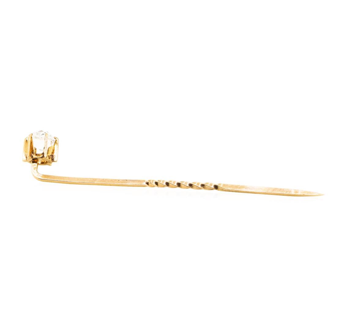 One stick pin featuring: 10KT yellow gold weighing 1.0 grams containing one white crystal.