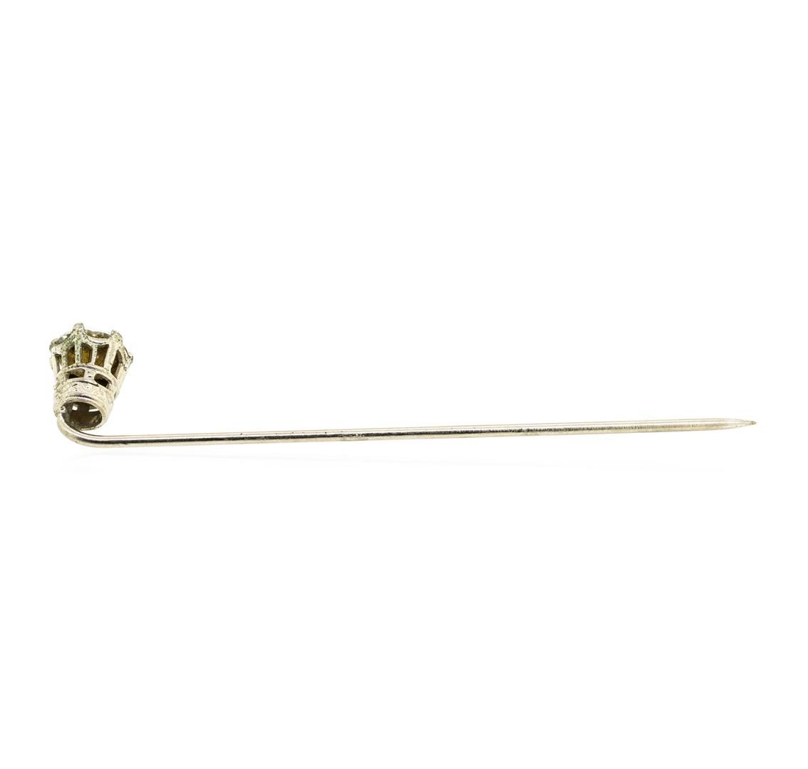 One silver plated stick pin weighing 1.1 grams featuring one white crystal.