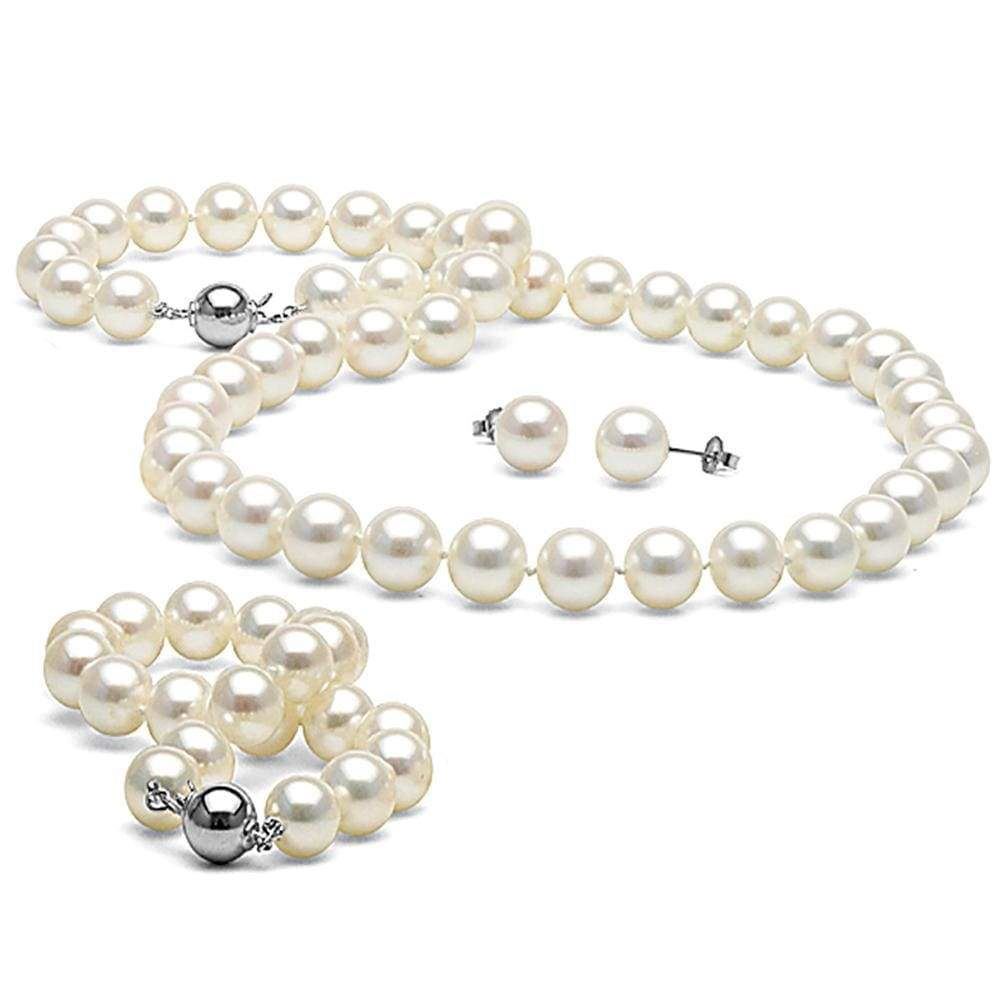 White Elite Collection 3-Piece Pearl Set, 8.5-9.0mm