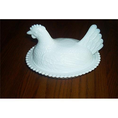 <tr><td>Title:White Glass Hen On Nest</td></tr>