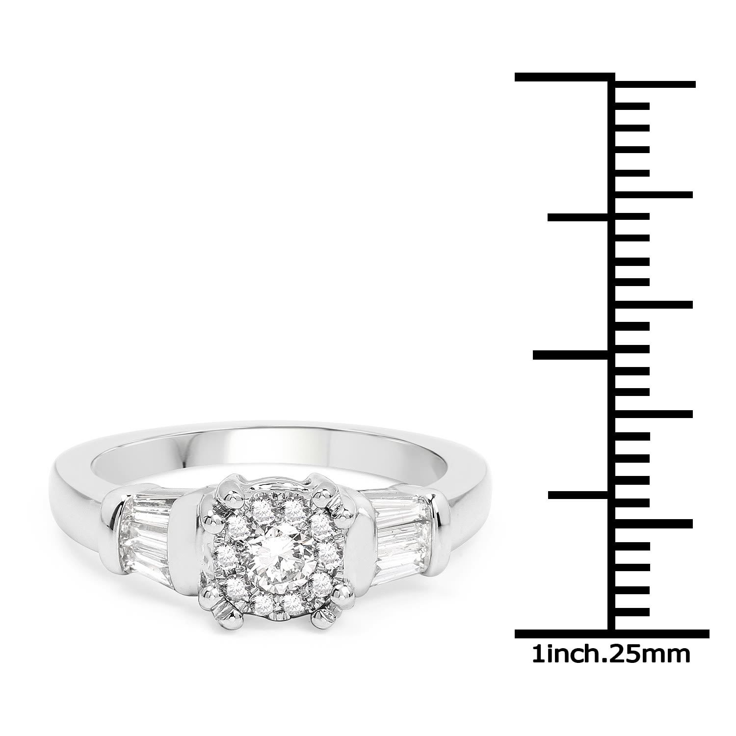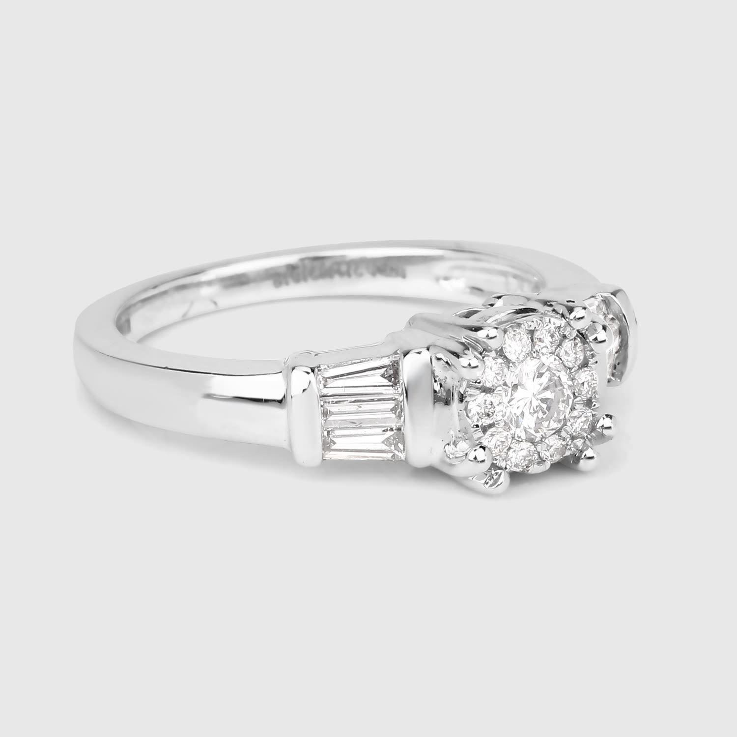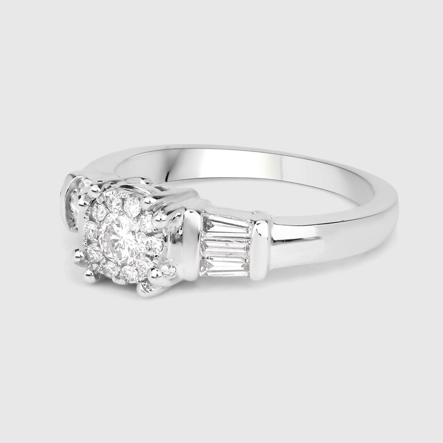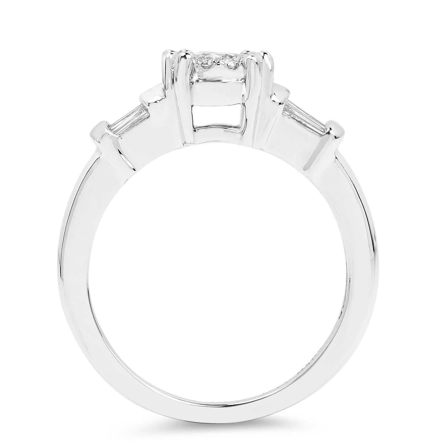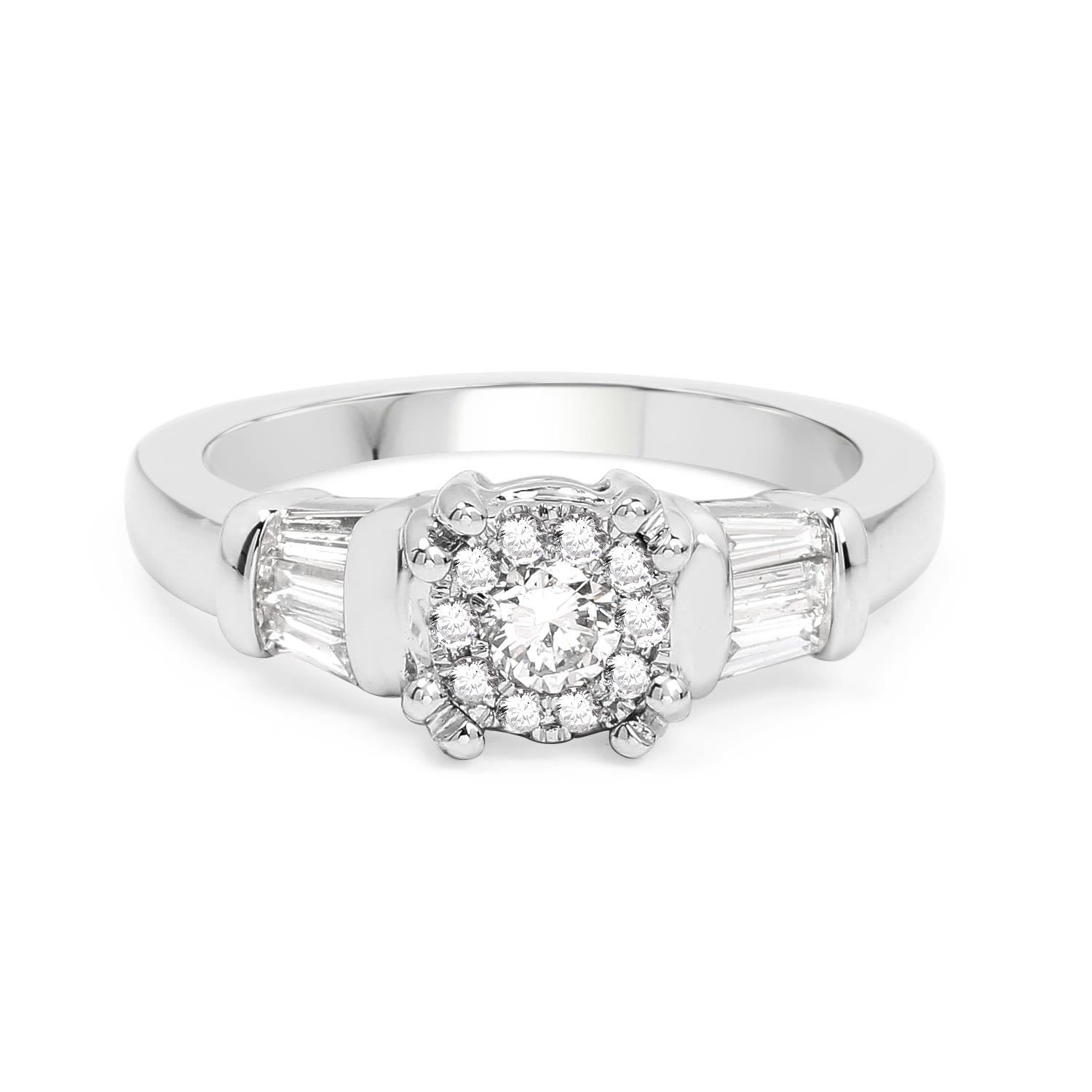 TITLE DESCRIPTION: White Gold Cluster Diamond Ring with Baguettes