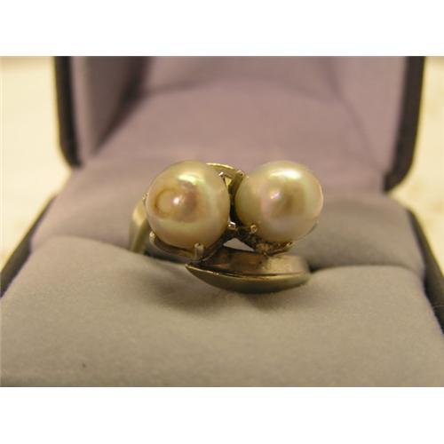 <tr><td>Title:White Gold Ring Set with Two 8mm Natural Pearls</td></tr>
