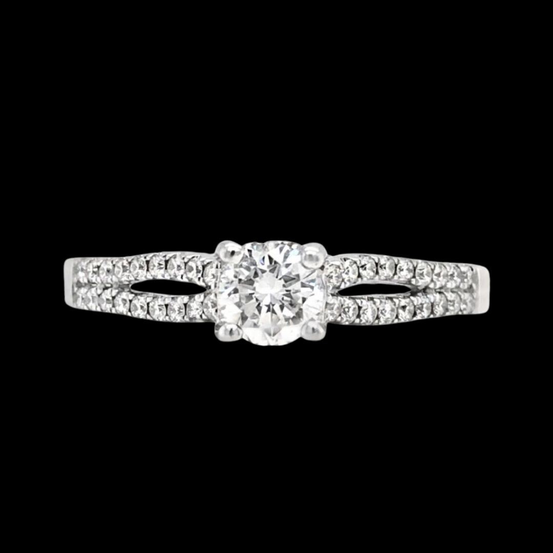 PMI5544/1- KES TITLE DESCRIPTION: White Gold Split Shank Diamond Engagement Ring DESCRIPTION DETAIL: A lovely engagement ring set with a natural round brilliant Diamond in the center. The split shank is accented with natural round brilliant Diamonds in 14K White Gold. OVERALL CONDITION: New, Excellent DIAMONDS: Natural Weight: 0.77 Carats Total Weight Shape: Round, Brilliant-Cut Color: Approximately G-H Clarity: Approximately SI1-SI2 METAL: 14K White Gold WEIGHT: 3.98 Grams SIZE: 9.00 US The consignor’s stated retail price is $5,000.00 Please inquire about sizing, if needed, and allow an additional 10 days for shipping if we resize it. SOURCE: Corporate Liquidation PRIOR TO BIDDING READ THE DESCRIPTION, TERMS, AND CONDITIONS CAREFULLY This description and condition report is provided for your convenience based on the information provided by the consignor. CAA is not responsible for any discrepancies between this information and other opinions. Buyers Premium: 18% Shipping Billed Separately Payment Due in 7 days All items shipped to registered address - NO EXCEPTIONS PMI5544/1- kes