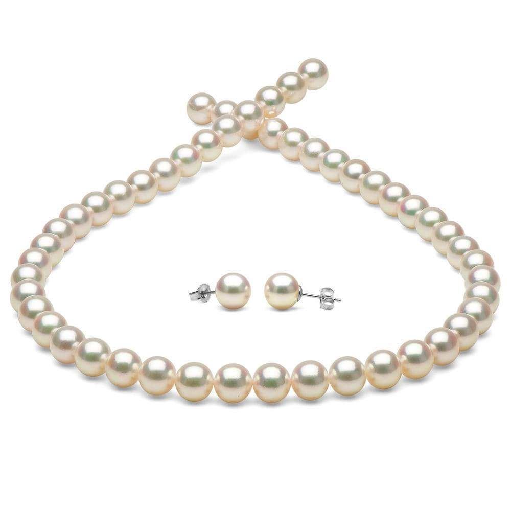White Hanadama Japanese Akoya Pearl Jewelry Set, 7.5-8.0mm