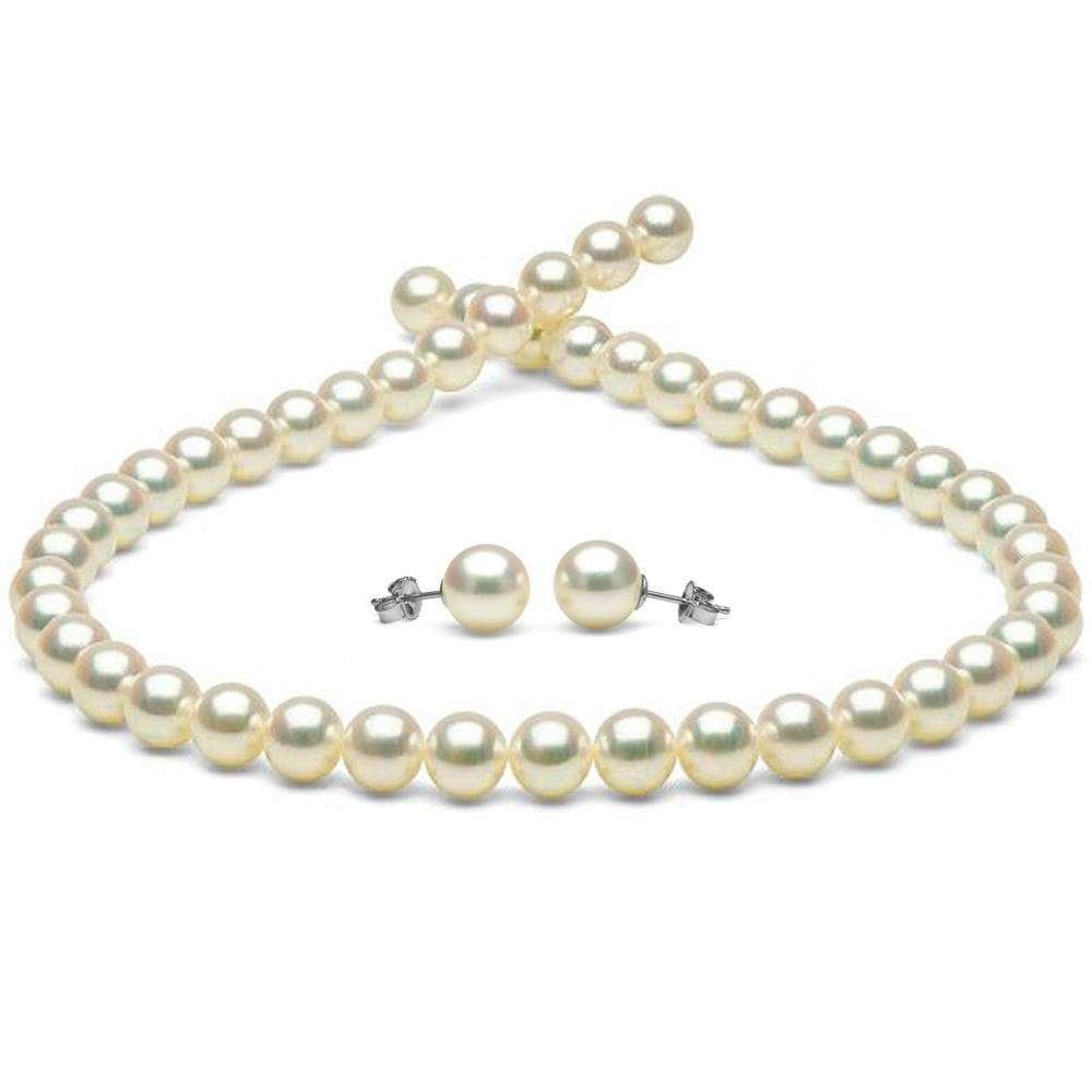 White Hanadama Japanese Akoya Pearl Jewelry Set, 8.5-9.0mm