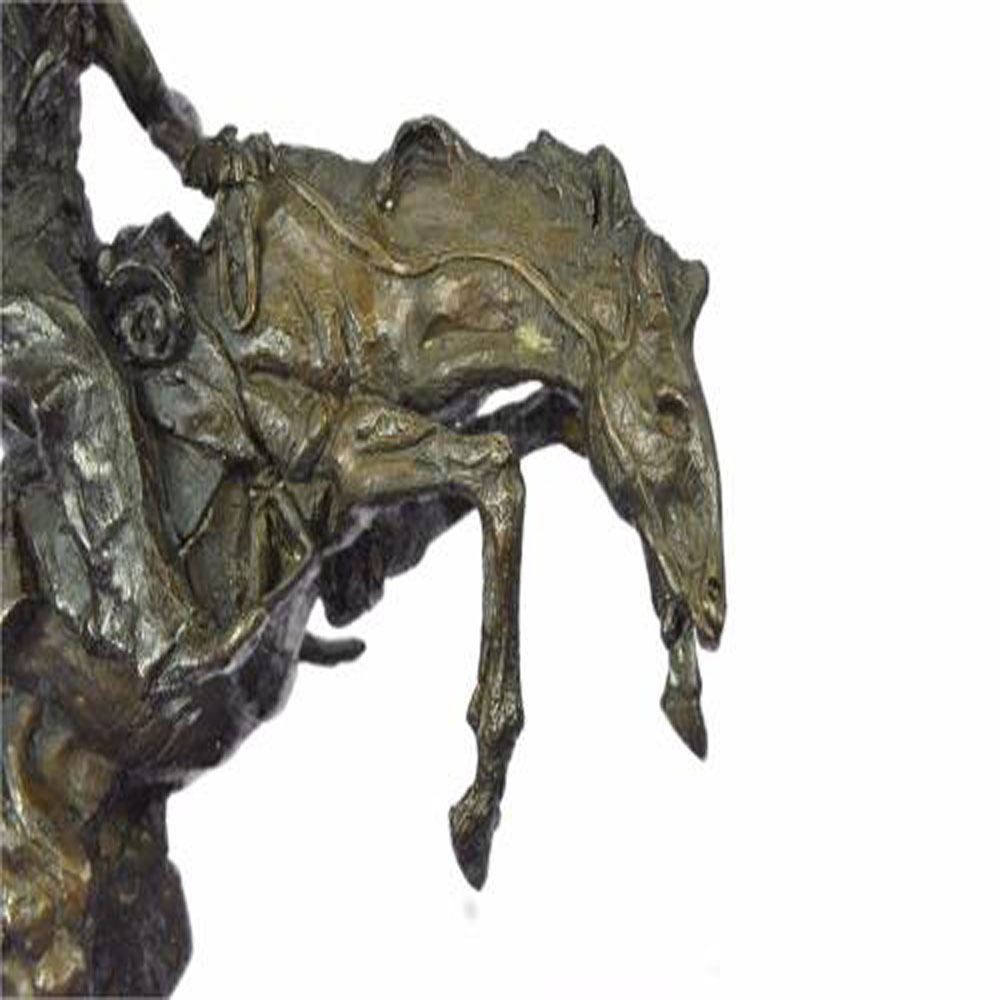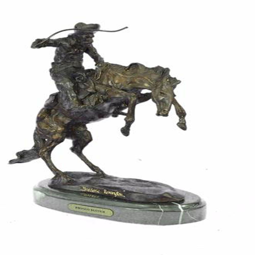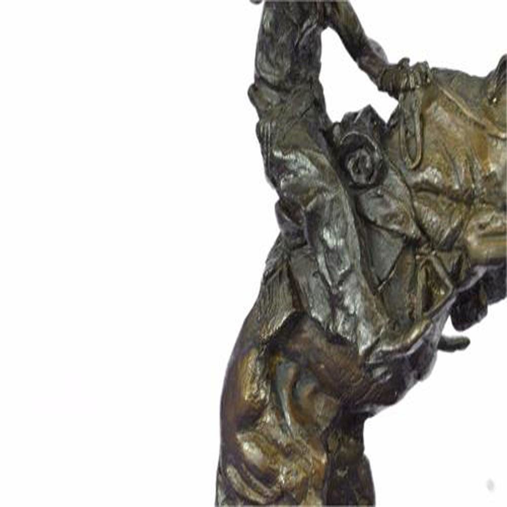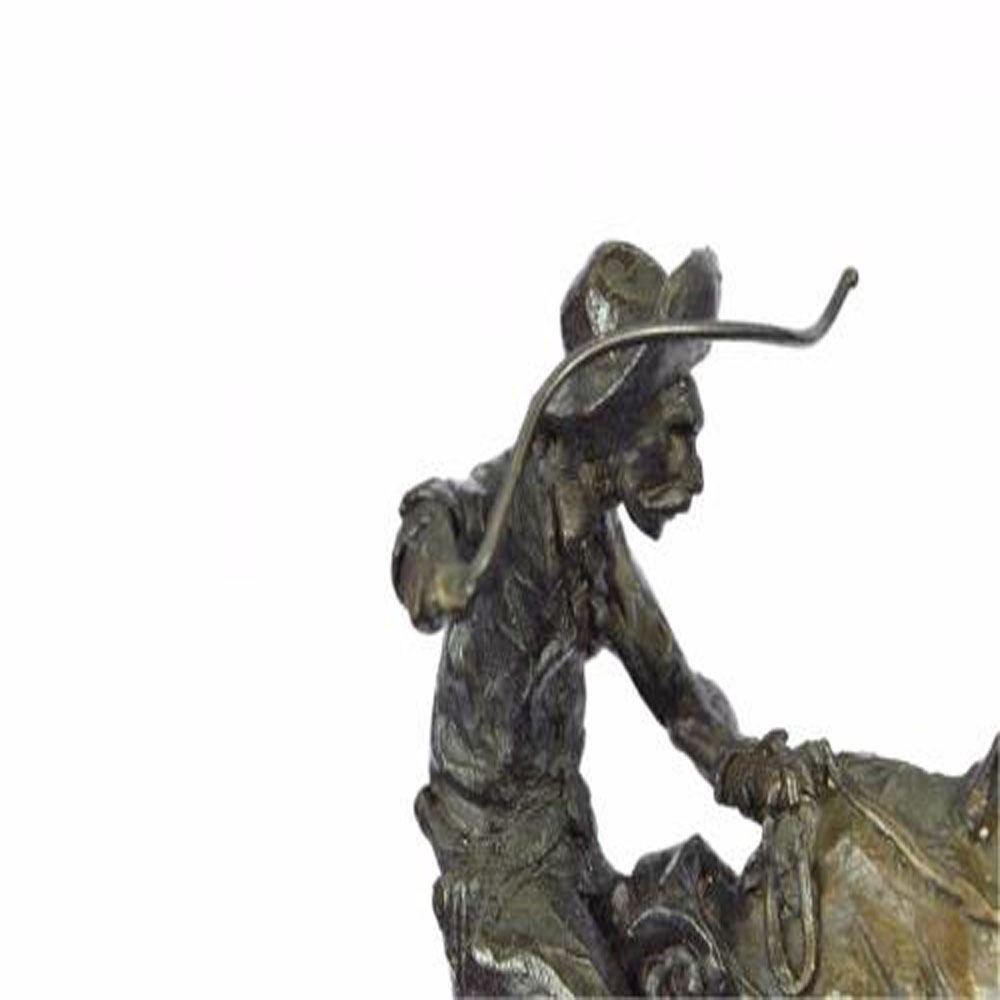 A great American classic, this Statue is of a cowboy on a horse moving fast through the wild wild west! The horse is standing high on his hind legs ready to gallop with some serious speed. The cowboy is dressed in the traditional cowboy hat, chaps, and handkerchief. Heaven has a whip in his right head ready to crack to gain speed. Creating using the lost wax method. Dimensions: Height 10 X Width 9 inches. Weight: 7 LBS.