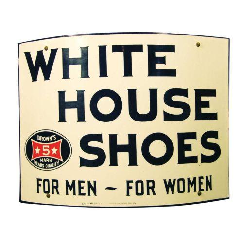 White House Shoes Curved Corner Porcelain Sign. Near mint condition. 18 X 14 inches.