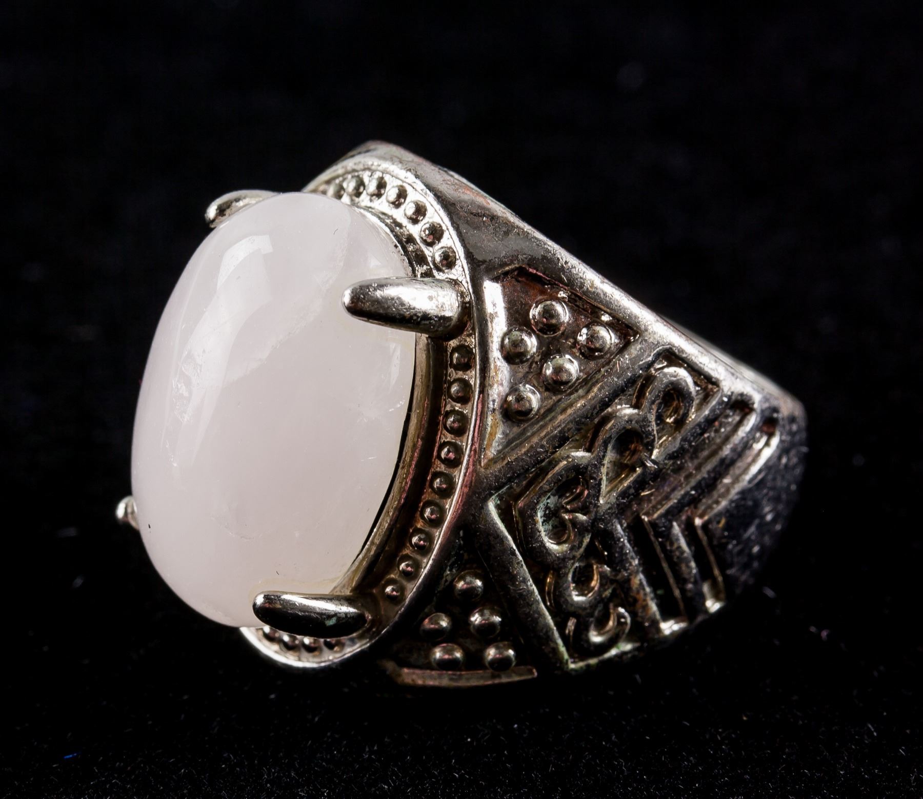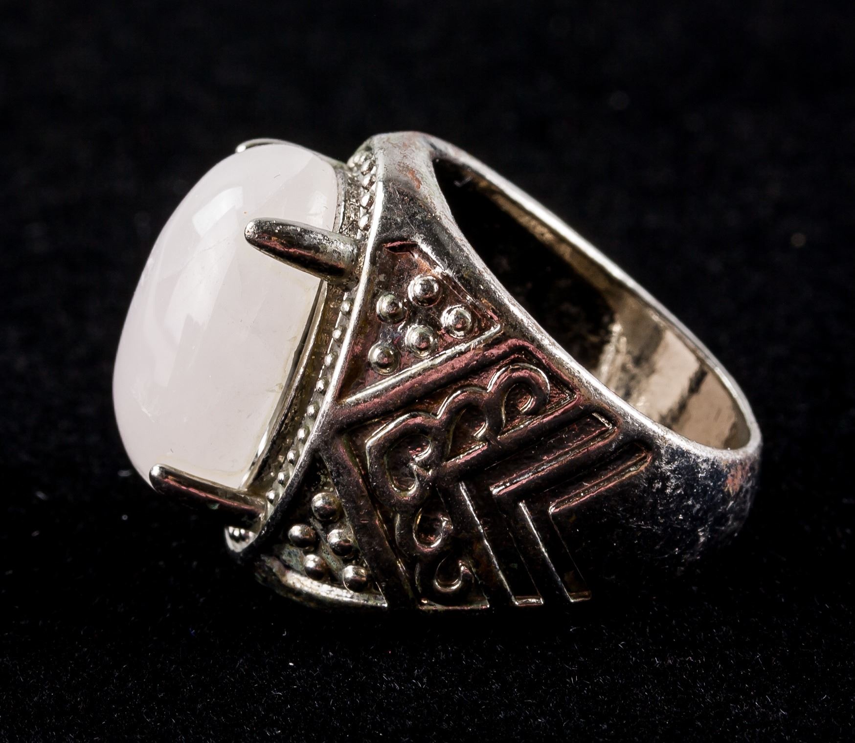 Silver ring. Set with one oval cut white jade. Size 8, 13 grams