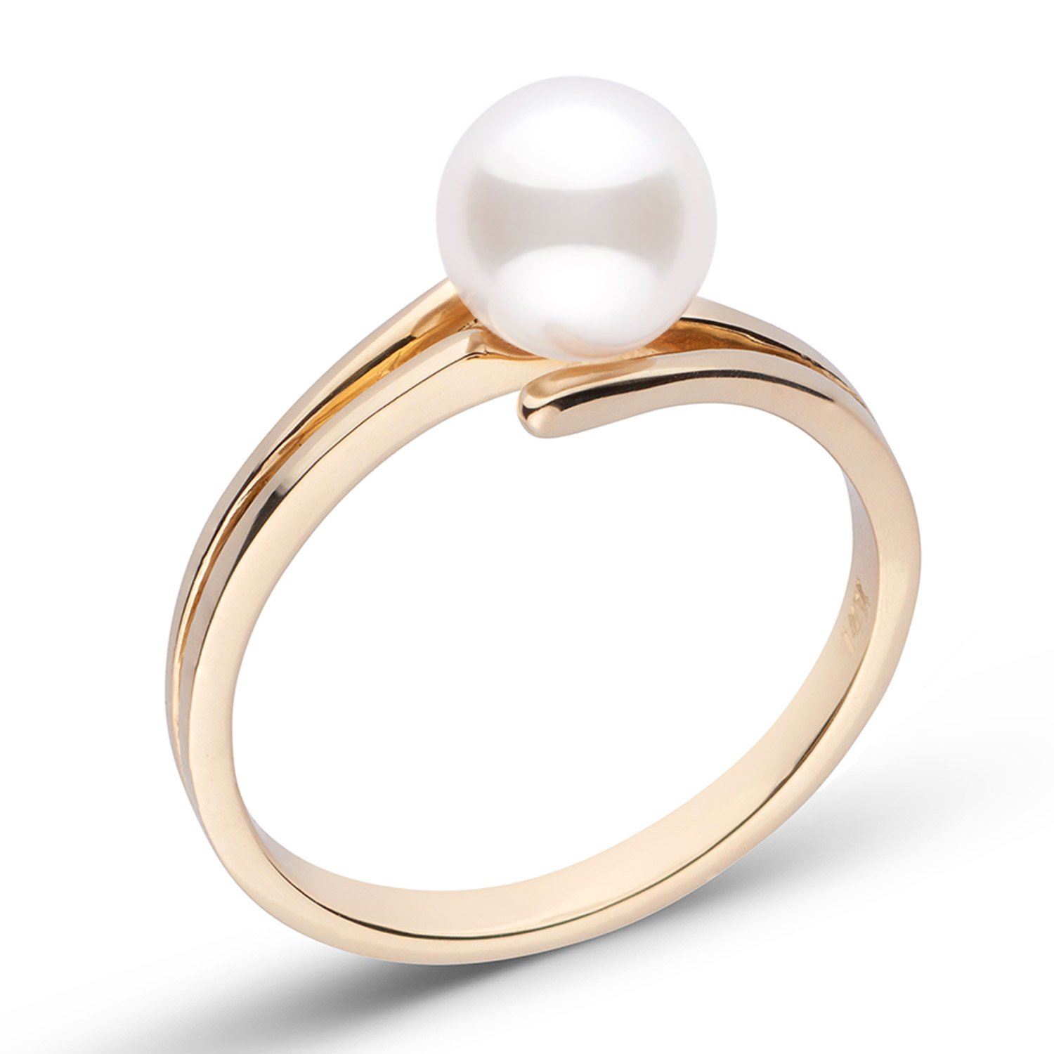 White Japanese Akoya Pearl Glance Solitaire Ring, 6.5-7.0mm