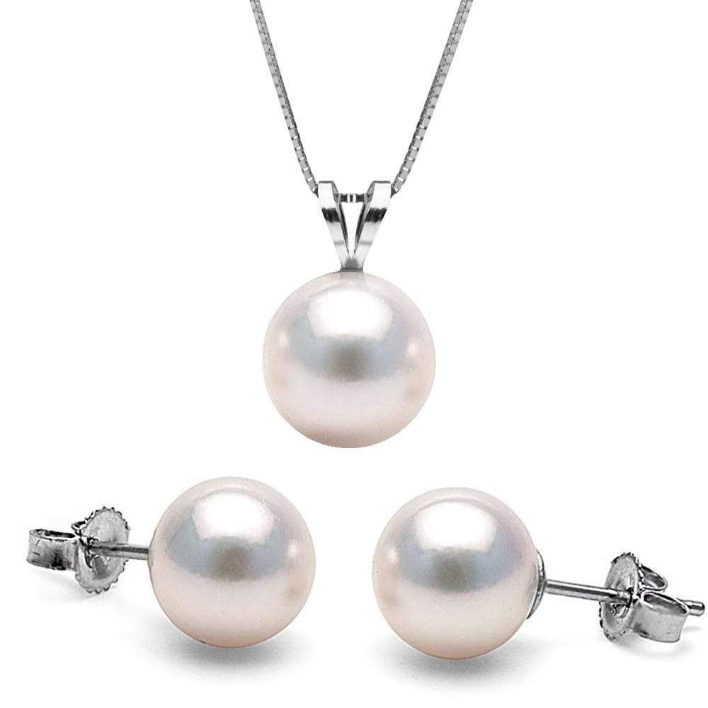 White Japanese Akoya Pearl Solitaire Pendant and Classic Stud Earring Set