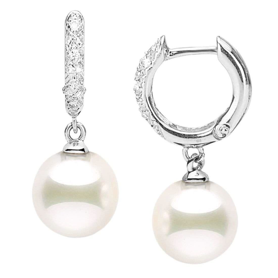 White Japanese Akoya Pearl and Diamond Pave Hoop Earrings