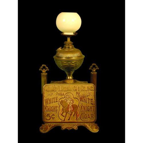 White Knight Cigar tip cutter and lighter, Morris D. Neumann and Co., Cast Iron with some nickel loss otherwise good condition, 7 x 13 x 9 inches.