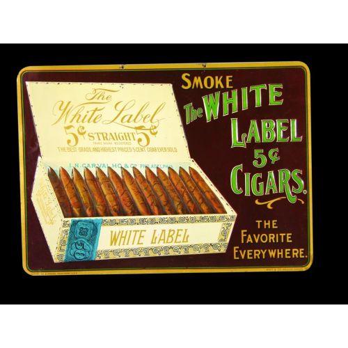 White Label Cigars Embossed Chain Hanger Sign. Excellent original condition 13 3/4 x 10 inches.