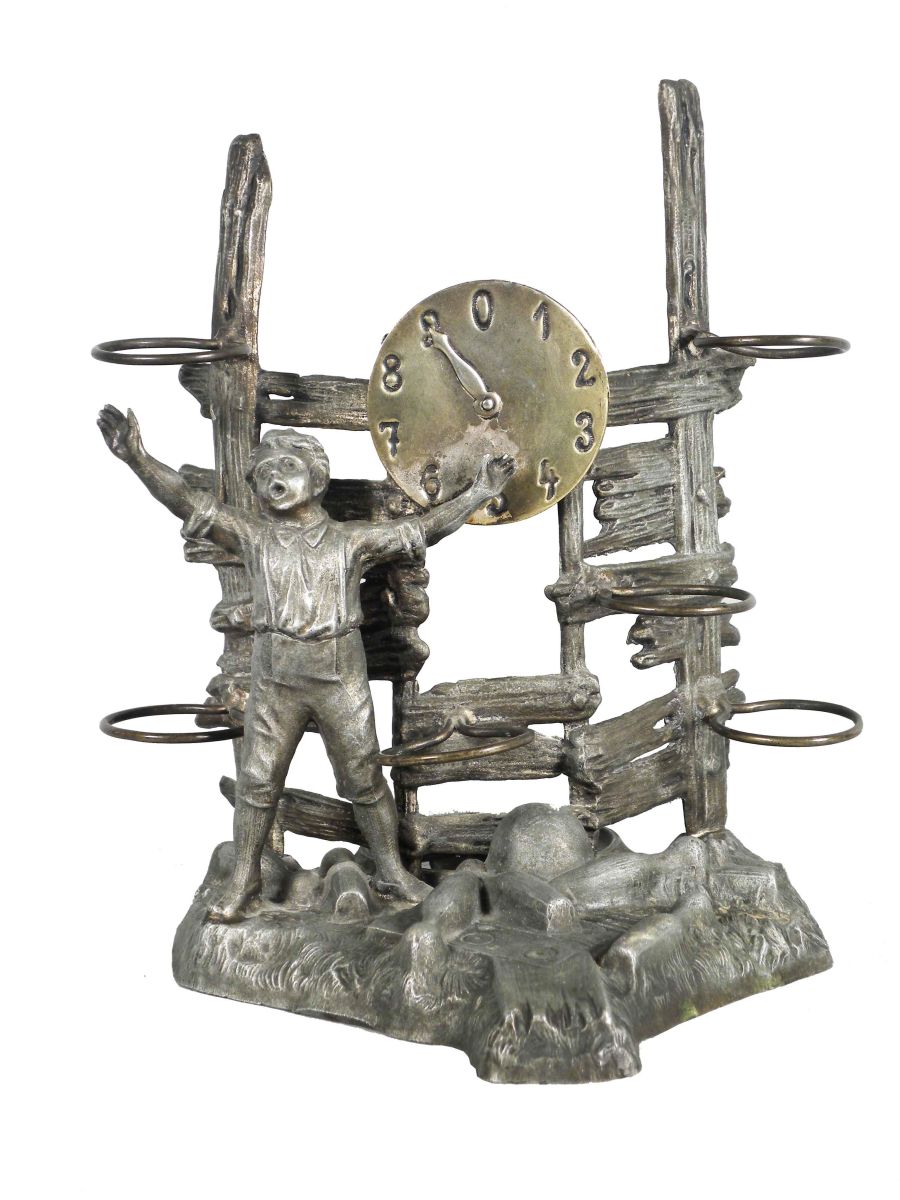 White Metal "What's it?" Marked Germany. Boy with bowling pins and ball. Display for ?? Each Auction we have a mistery item. This is it! Very good condition. 7 X 8 X 5 1/2 inches.