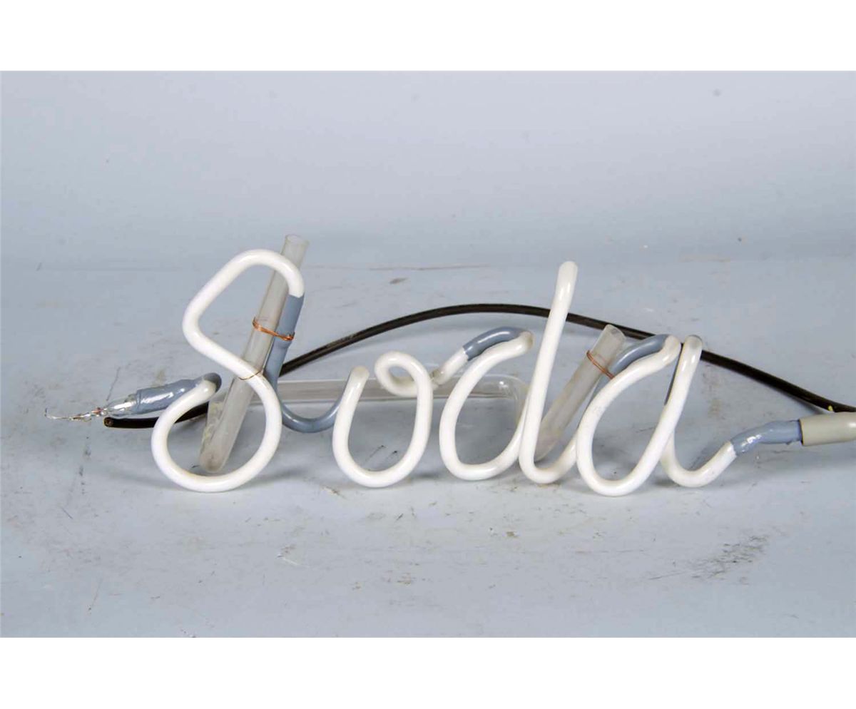 Free standing tubes read "Soda" and includes transformer. Condition (Good). Size 12" x 6.5"