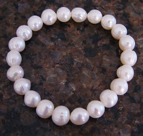 White Pearl Bracelet - 8 Mm Fresh Water Pearls - 7" Stretch Bracelet