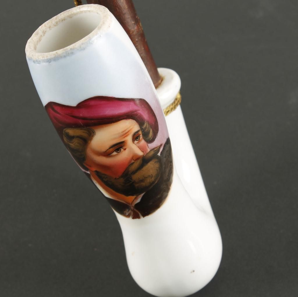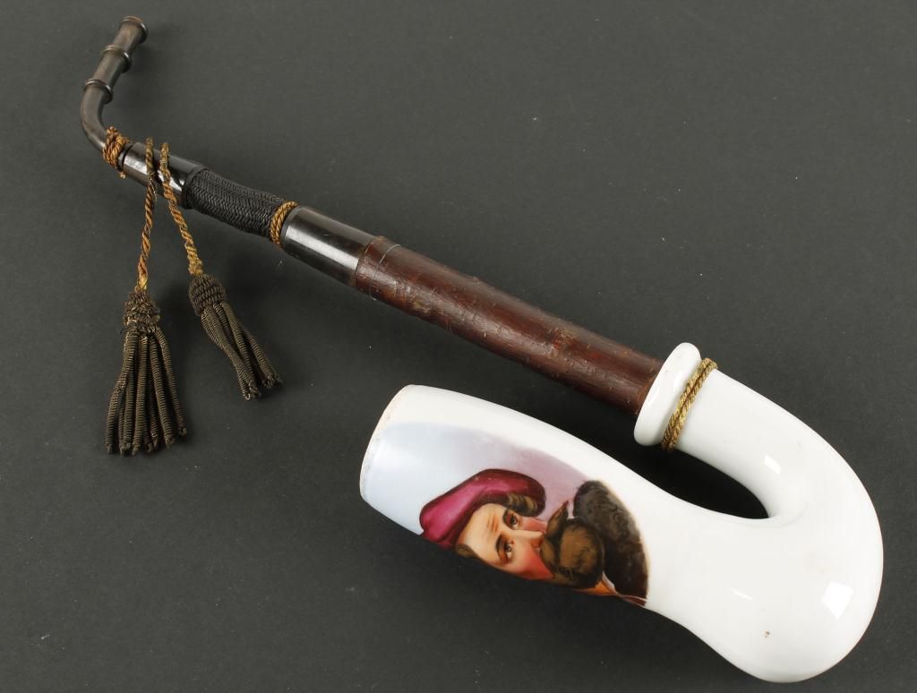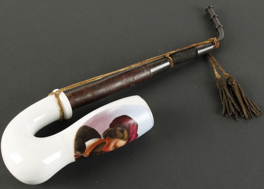 Wood stem, horn tip, good condition, measures approx 13" overall.