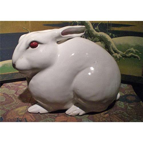 White Rabbit Ceramic Sculpture by Takegawa Chikusai (1809-1882), created in his final year, 1882. Takegawa Chikusai was responsible for putting Banko Yaki, and the Banko-gama kiln (established 1829) and its home of Yokkaichi City in Mie-ken back on its feet and on the map. Banko Yaki had previously been made in the early Edo Period in Kyoto. Takegawa Chikusai's work was bequeathed to the Yokkaichi Museum's permanent collection, so this is an extremely rare opportunity for you to own a masterpiece by this great artist. 11 x 7.5 inches, 28 x 19 cm. Excellent Condition. Signed with original box and inscriptions on the lid of the box.
