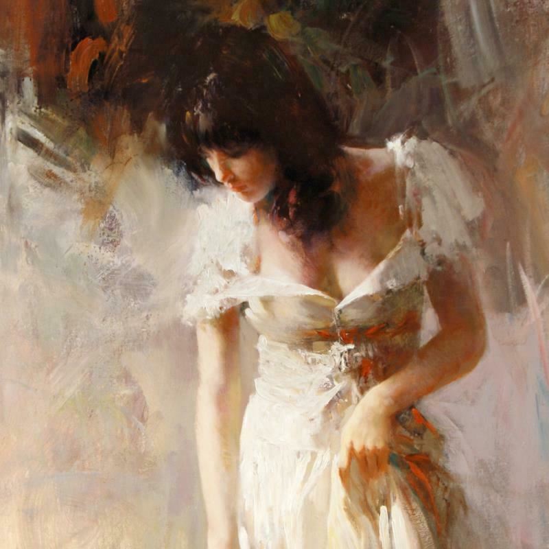 White Rhapsody by Pino (1939-2010). "White Rhapsody" is an artist embellished limited edition giclee on canvas by Pino (1939-2010), PP Numbered and hand signed by the artist. Includes Certificate of Authenticity. Measures approx. 30" x 40" (image). This piece is not stretched.