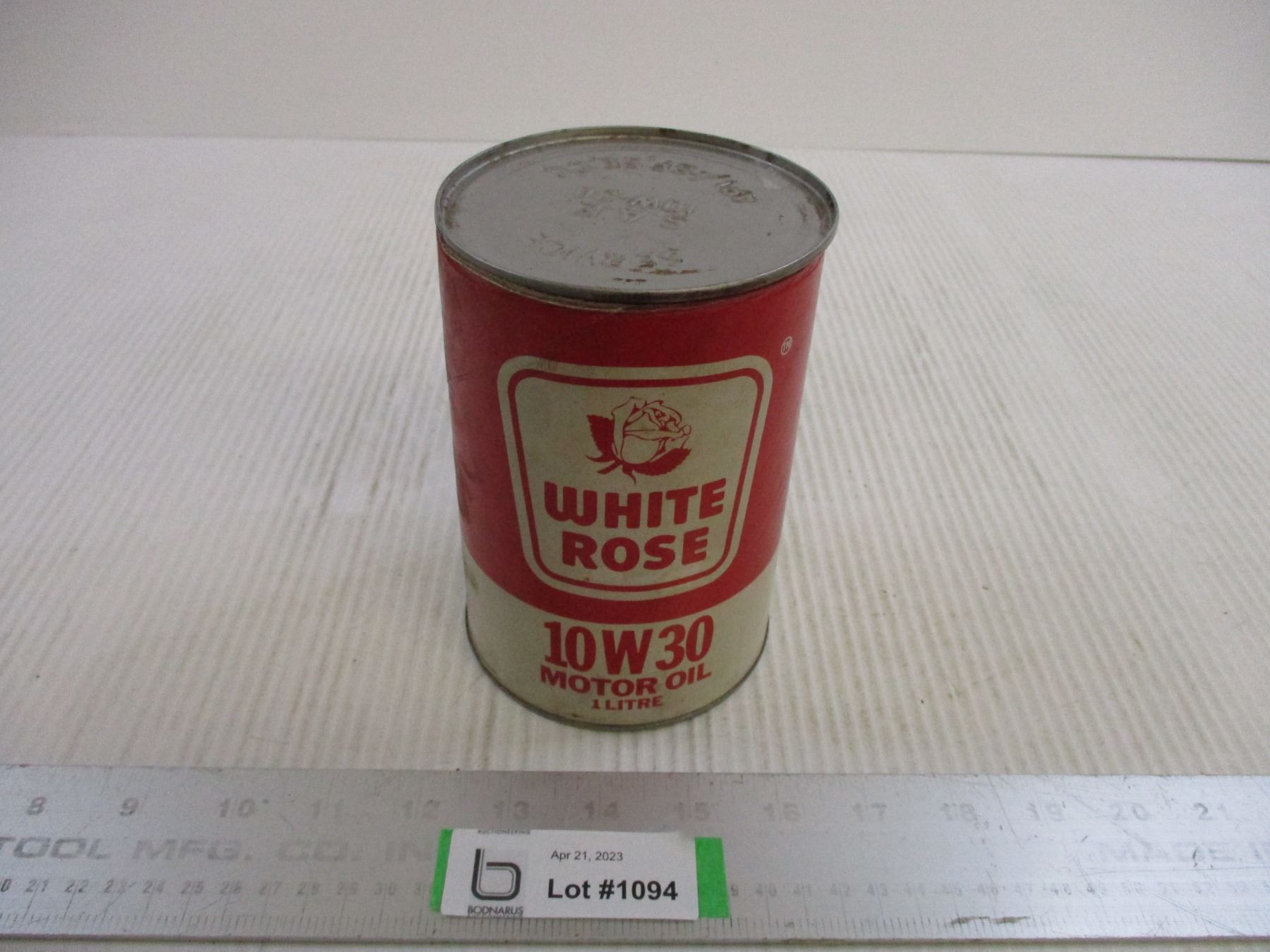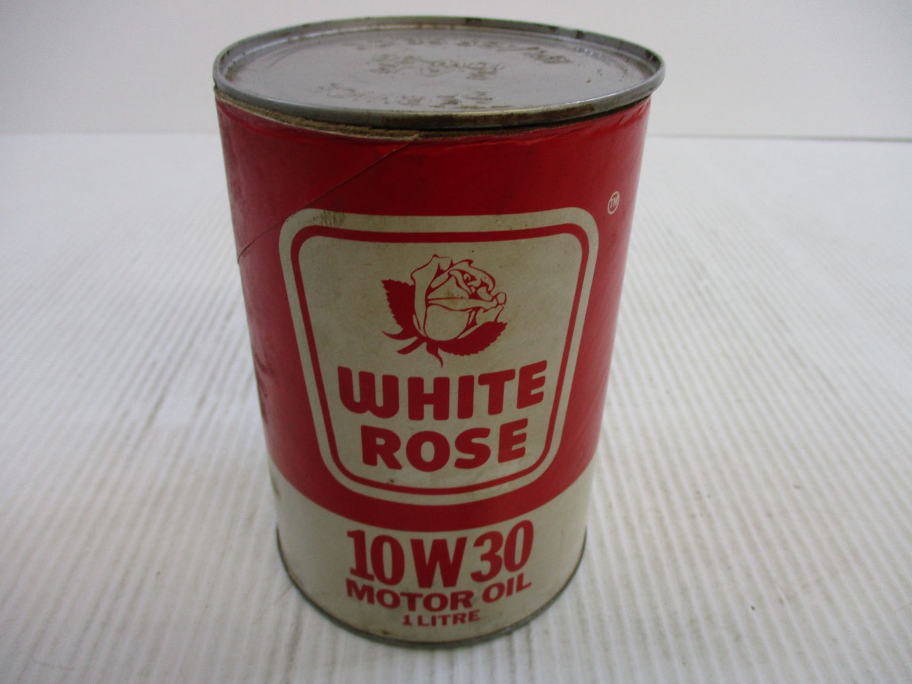 White Roase Motor Oil Can w/ Paper (Cardboard?) Label