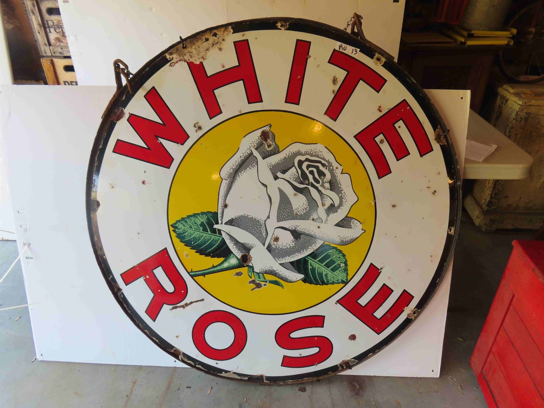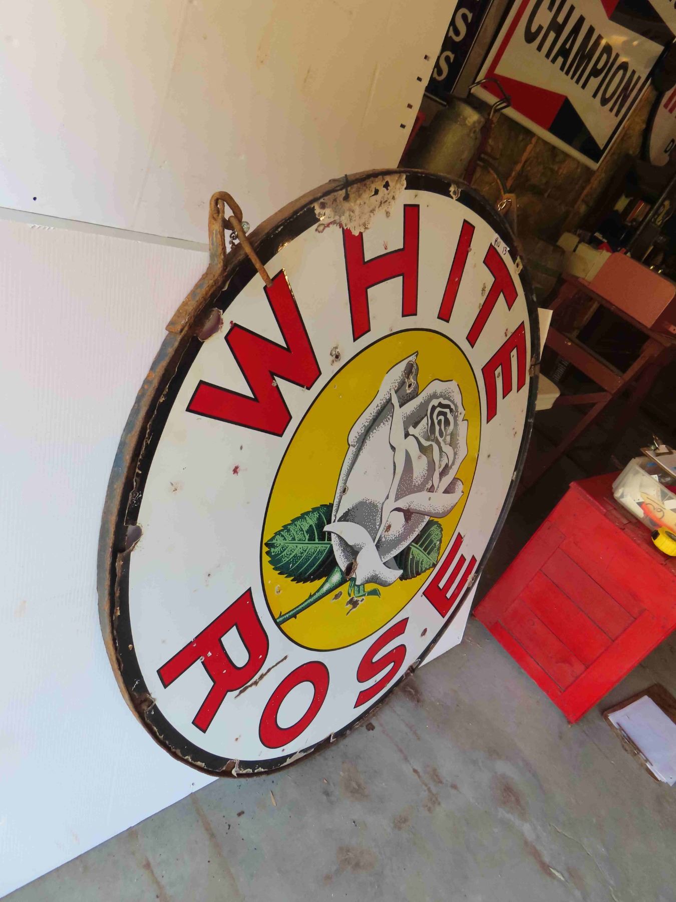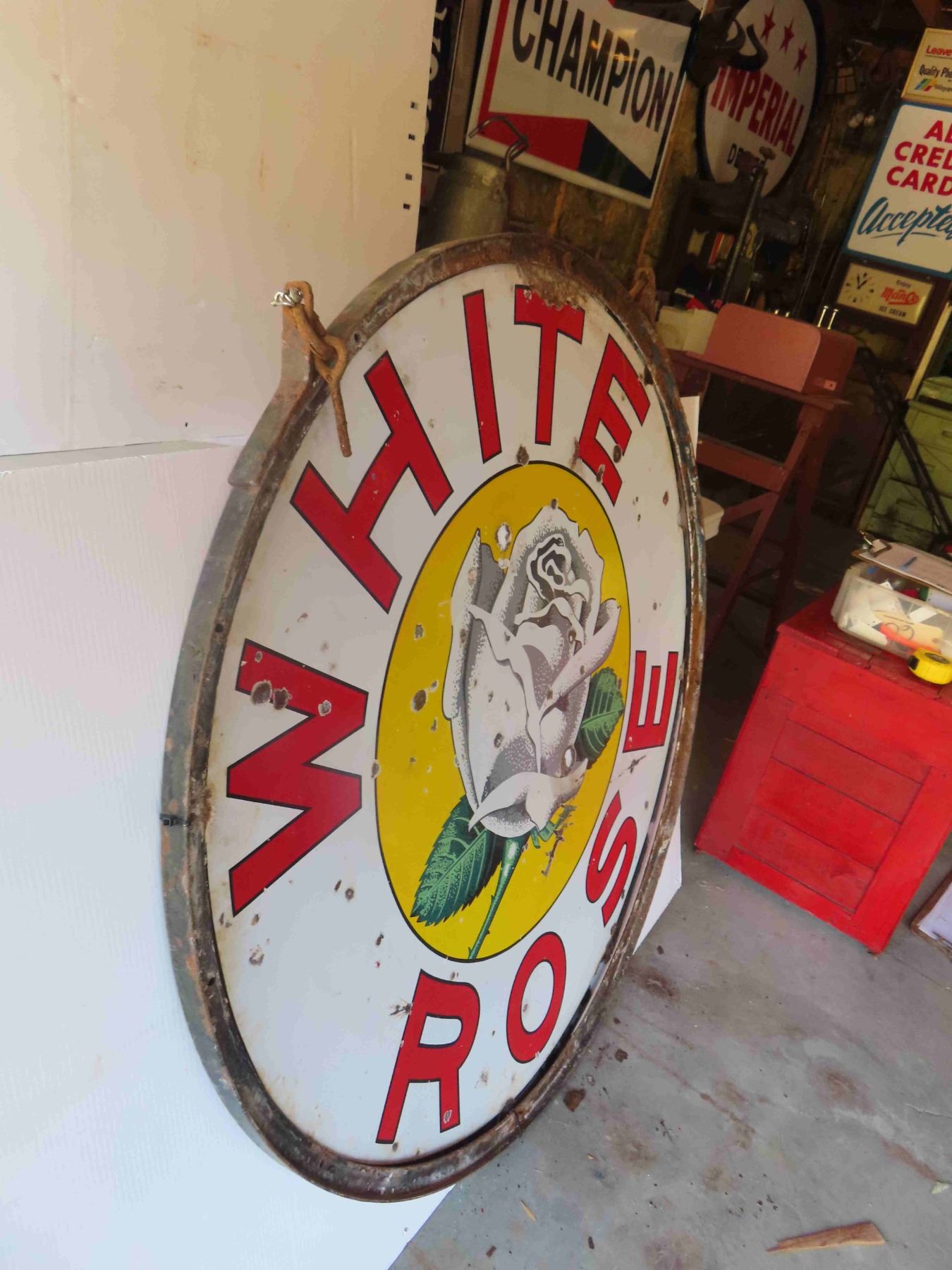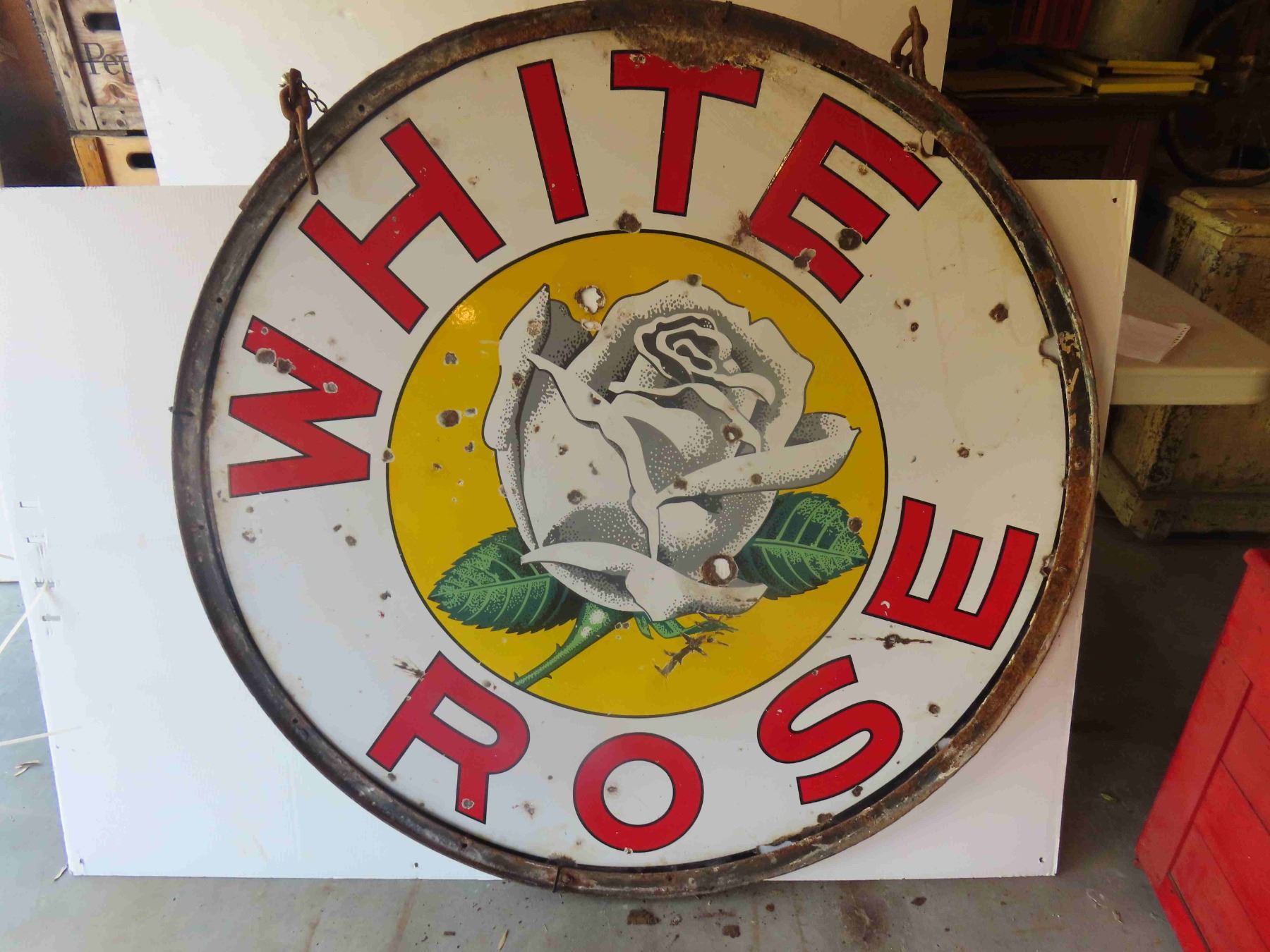 White Rose Porcelain 2 Sided Sign with Frame 48'' Across