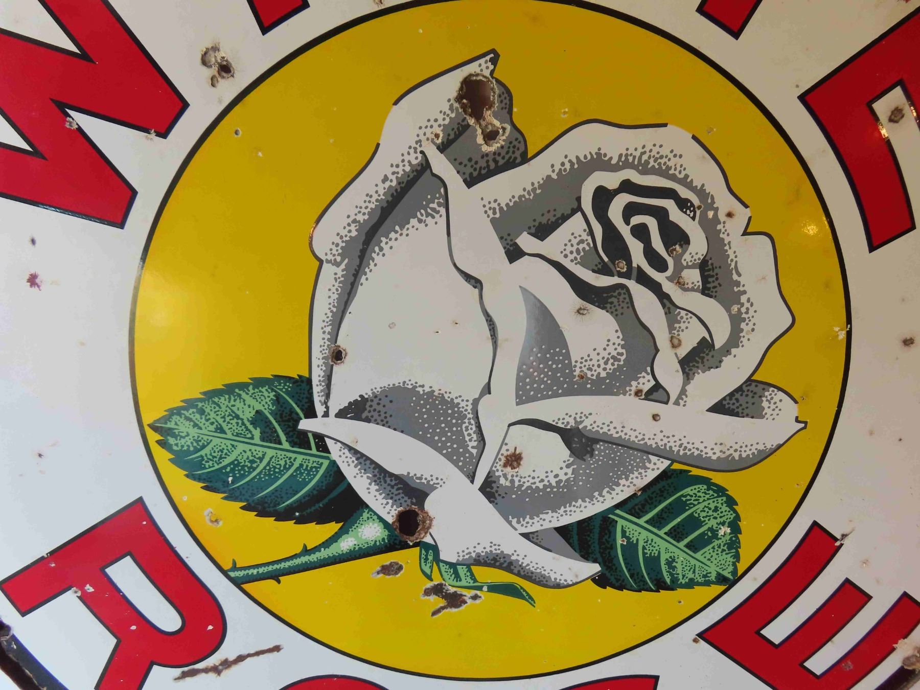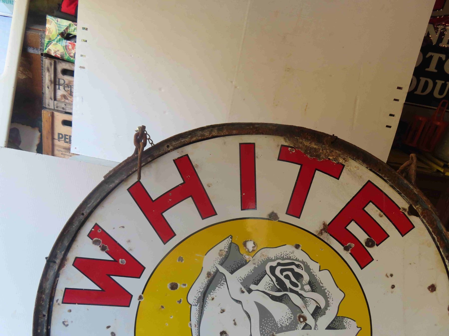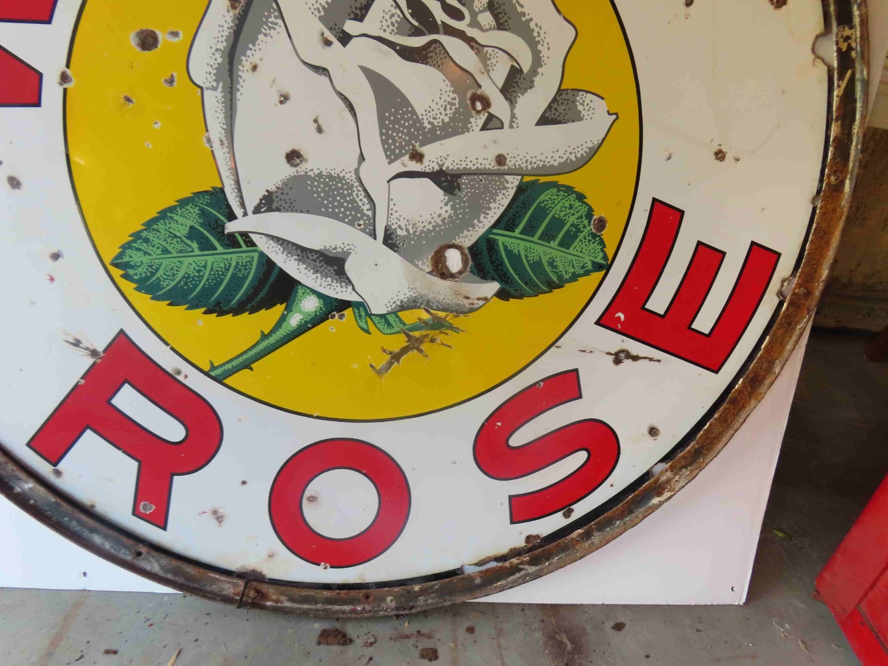 White Rose Porcelain 2 Sided Sign with Frame 48'' Across