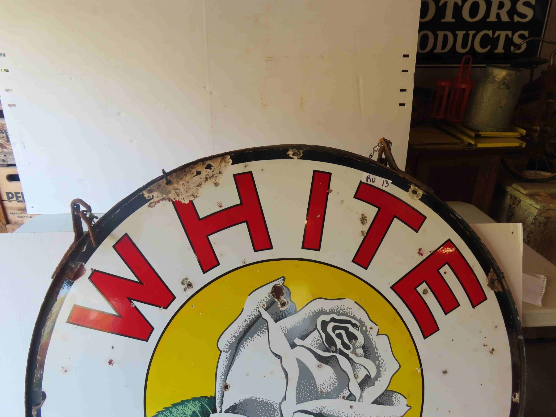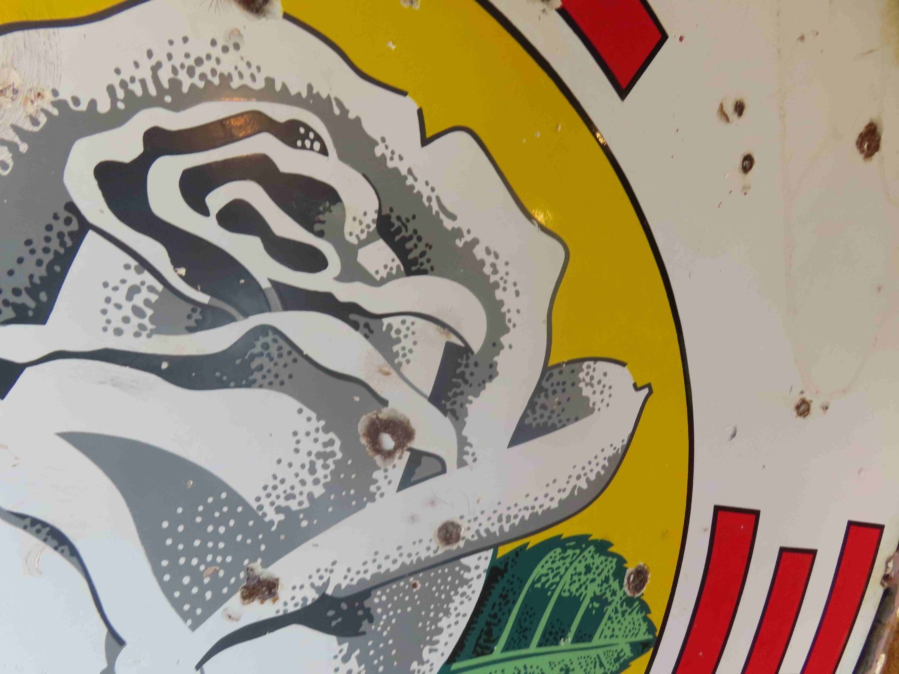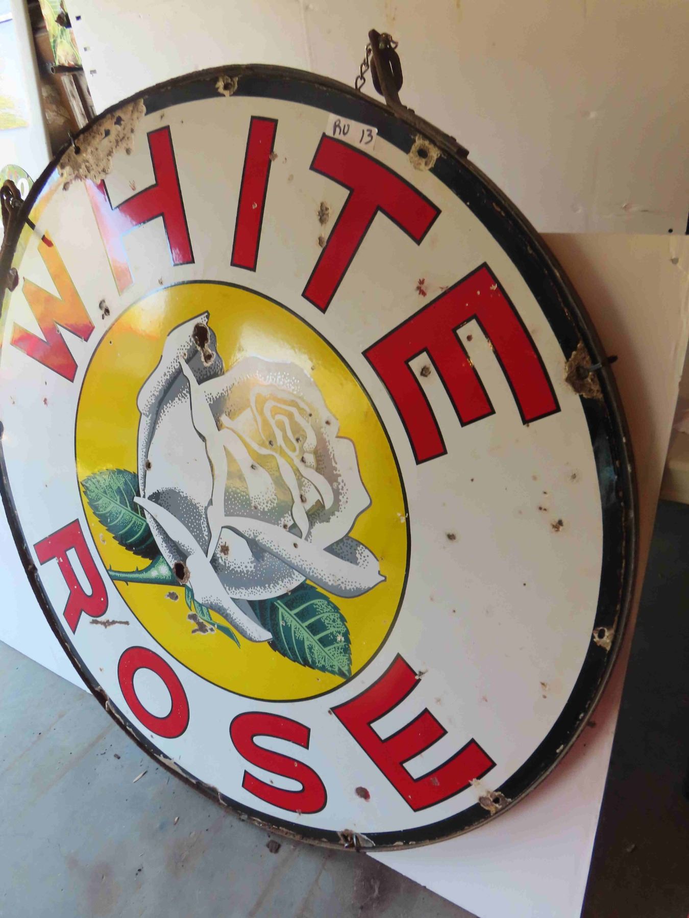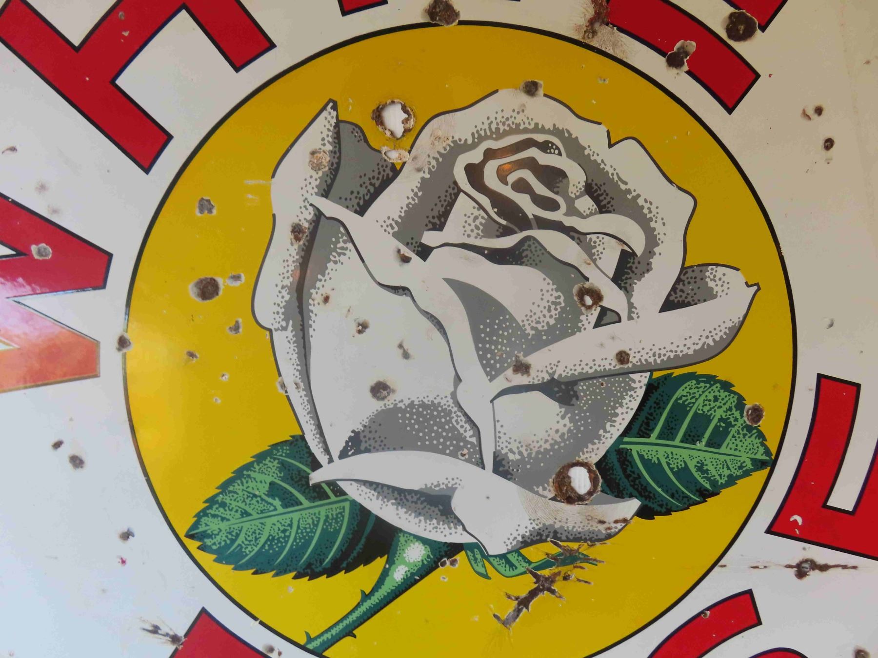 White Rose Porcelain 2 Sided Sign with Frame 48'' Across