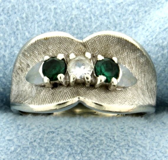 White Sapphire, Tourmaline, & Lab Emerald Ring