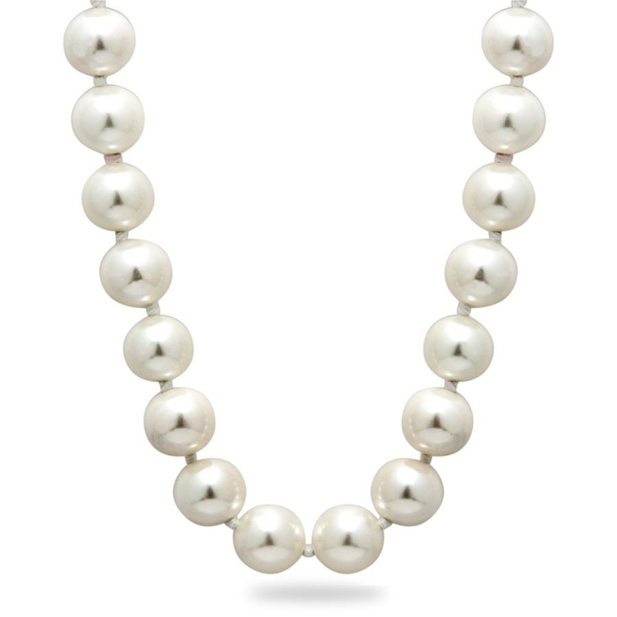 One White Shell Bead Hand Knotted Pearl Necklace. 36 inches in length.