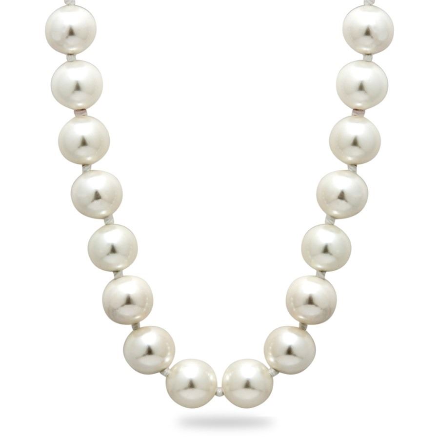 One White Shell Bead Hand Knotted Pearl Necklace. 36 inches in length.