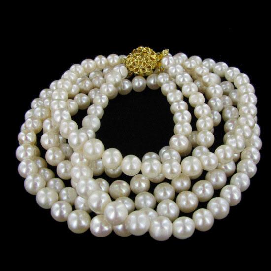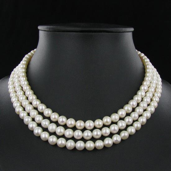 Excellent small white saltwater pearls; uniformly sized (6mm); 180 count; 45" (15" 3 strands);