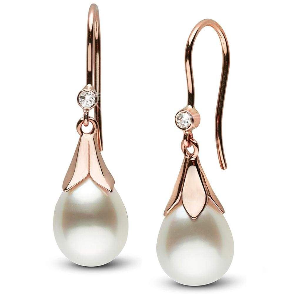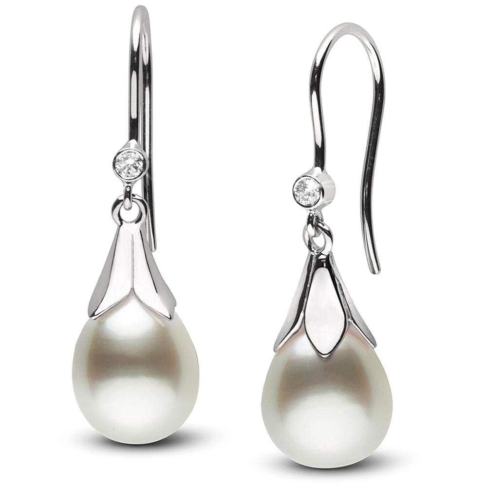 White South Sea Drop-Shape Pearl and Diamond Lily Dangle Earrings, 14K Gold