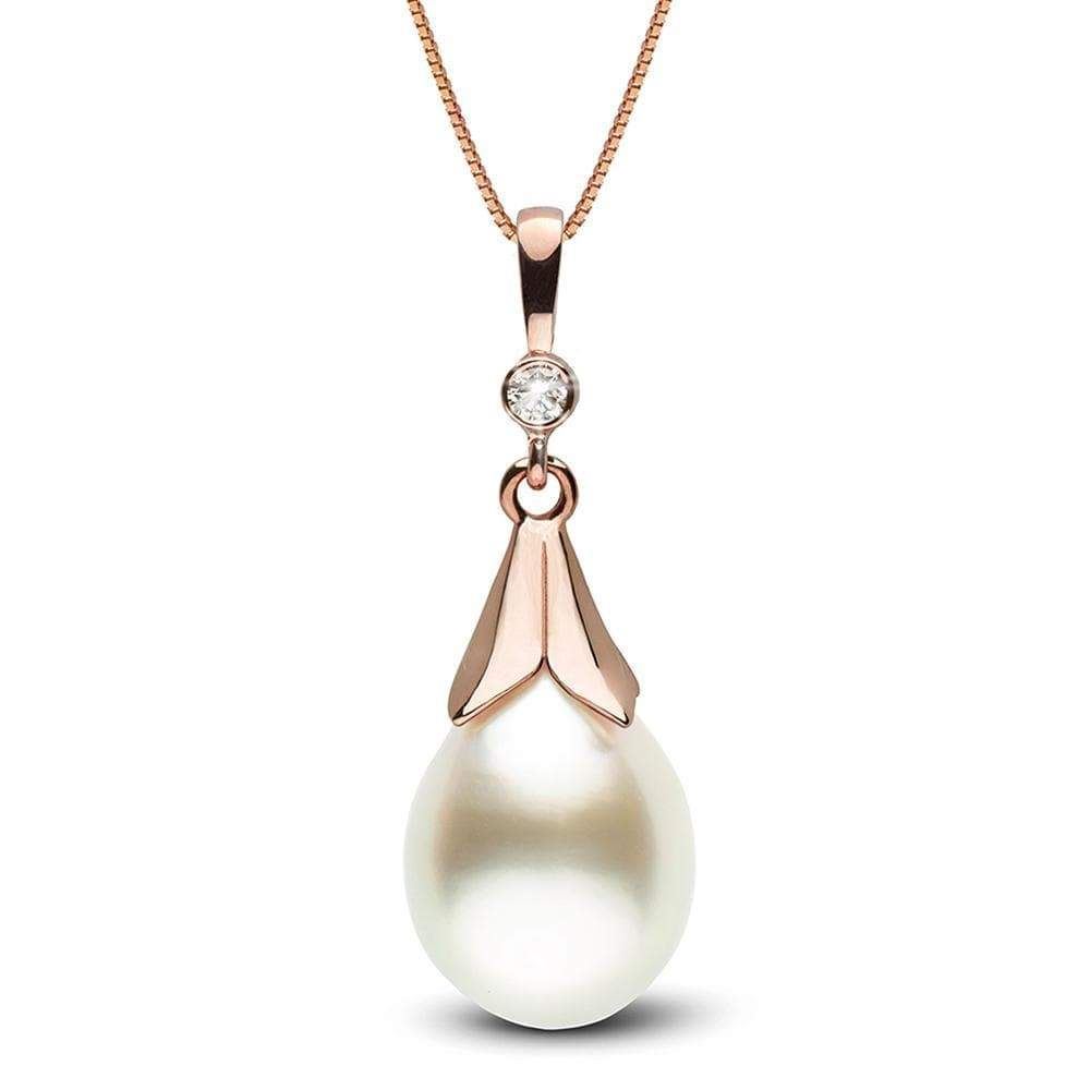 White South Sea Drop-Shape Pearl and Diamond Lily Pendant