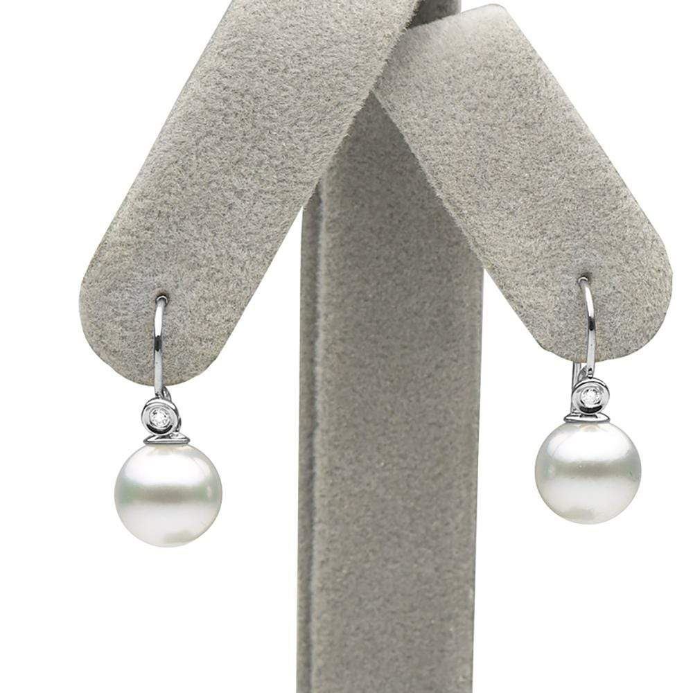 White South Sea Pearl and Diamond Shepherd Hook Earrings