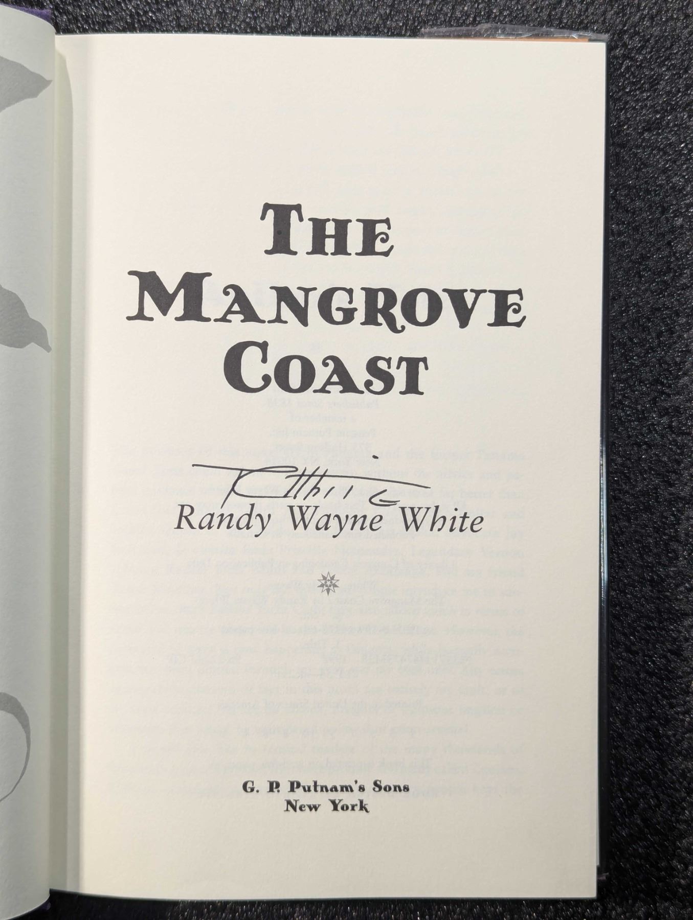 White, Randy Wayne. THE MANGROVE COAST. G. P. Putnam's Sons, New York. 1998. 8vo. (12), 290, (2) pages. original dark purple cloth over light purple embossed boards, gilt, protected jacket. Signed by the author. English text. The David Baker Library. Fine. Florida marine biologist Doc Ford agrees to help the daughter of a dead war comrade and travels to Baja to look for the girl's mother, who disappeared in the company of an extraordinarily sinister man. Lot weight: 1 lbs 4oz. Subject(s): Florida Maritime Novel.