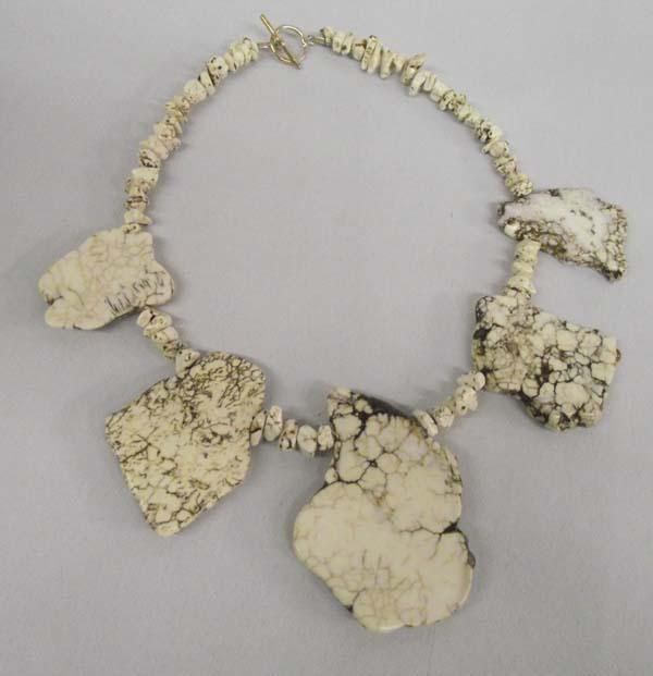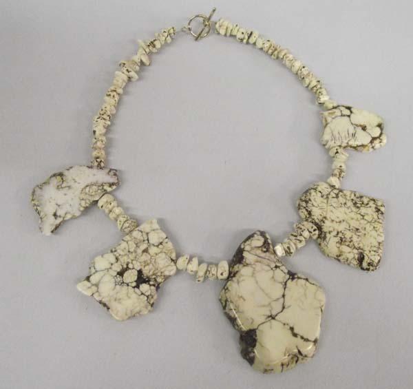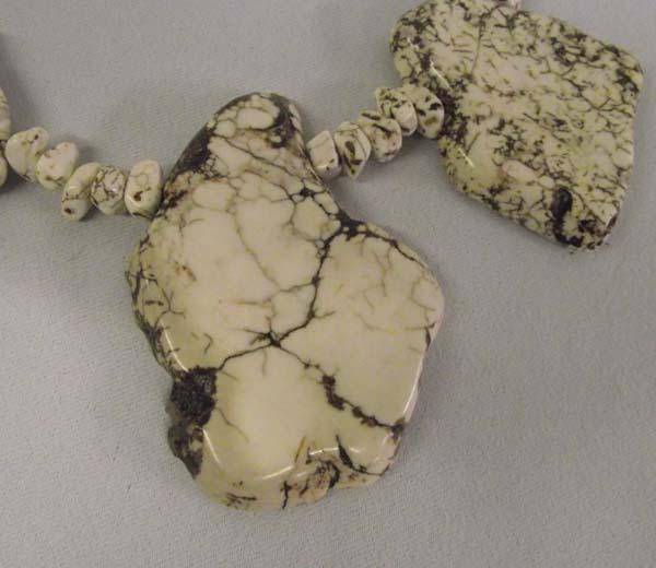 White Buffalo Turquoise necklace is 17'' long. The largest piece of turquoise is 2.75'' x 2'' in size. Buyers Pay Actual Shipping and Handling Charges(see terms and conditions for more information).