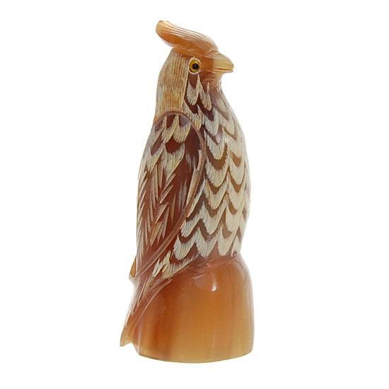 Excellent piece; finely carved Thai scrimshaw in bird image on VERY RARE white water buffalo horn; 3"; $89 retail