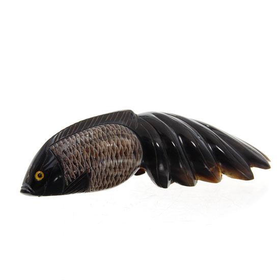 Excellent piece; finely carved Thai WATERBUFFSCRIM in koi image on RARE water buffalo horn; 6"; $89 retail