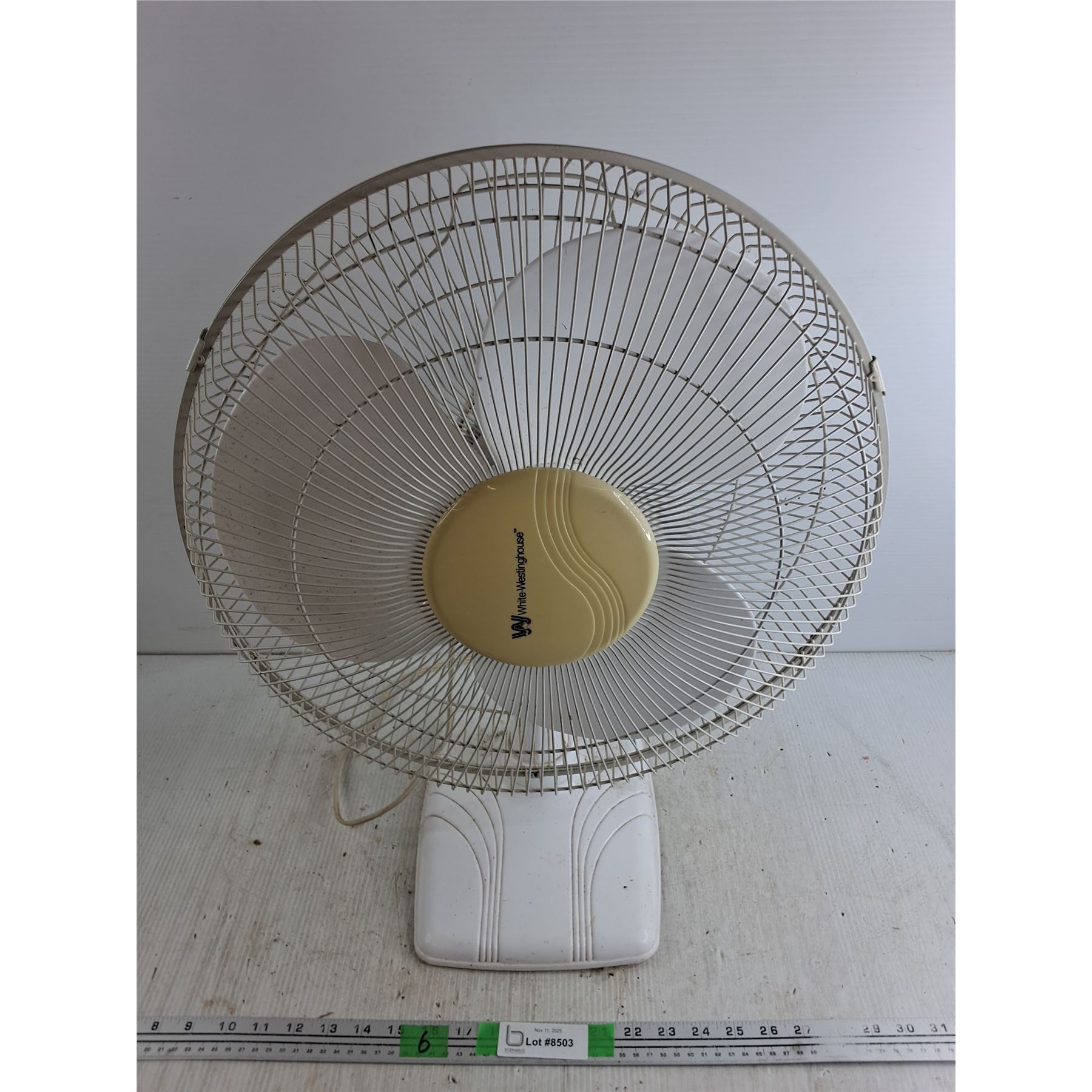 White Westinghouse Desk Top Fan - Powers On, As Is, 24  Tall, Cannot Ship