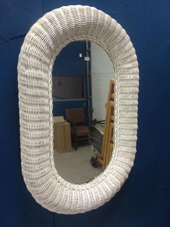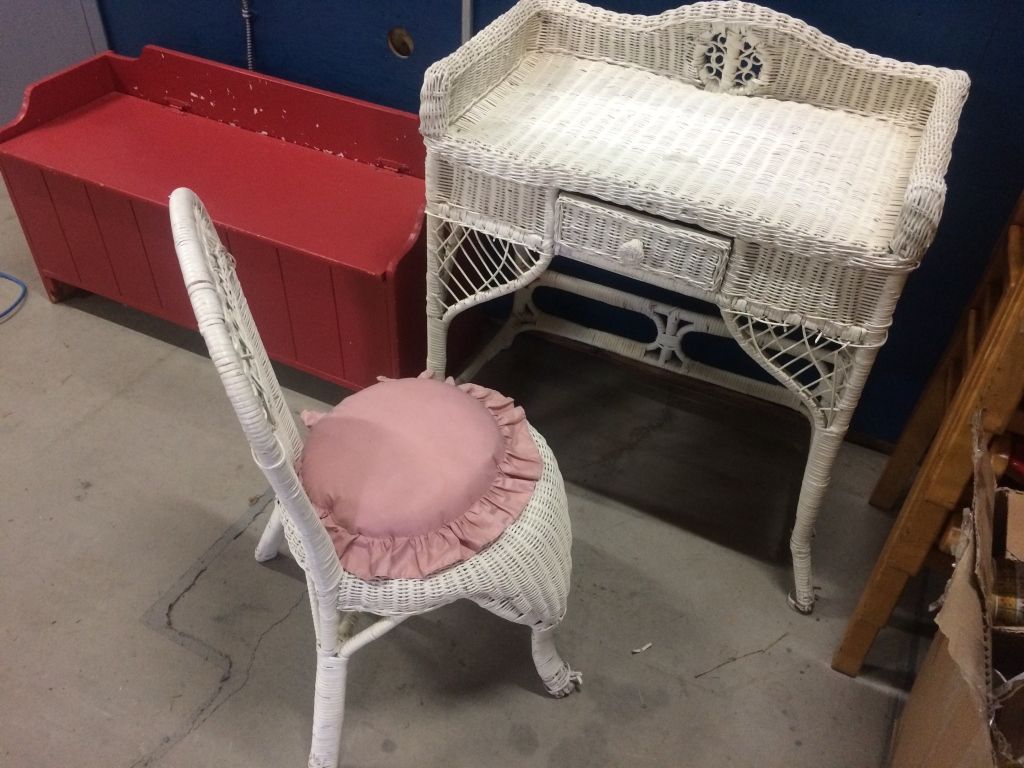 White Wicker Vanity Table With Mirror and Chair