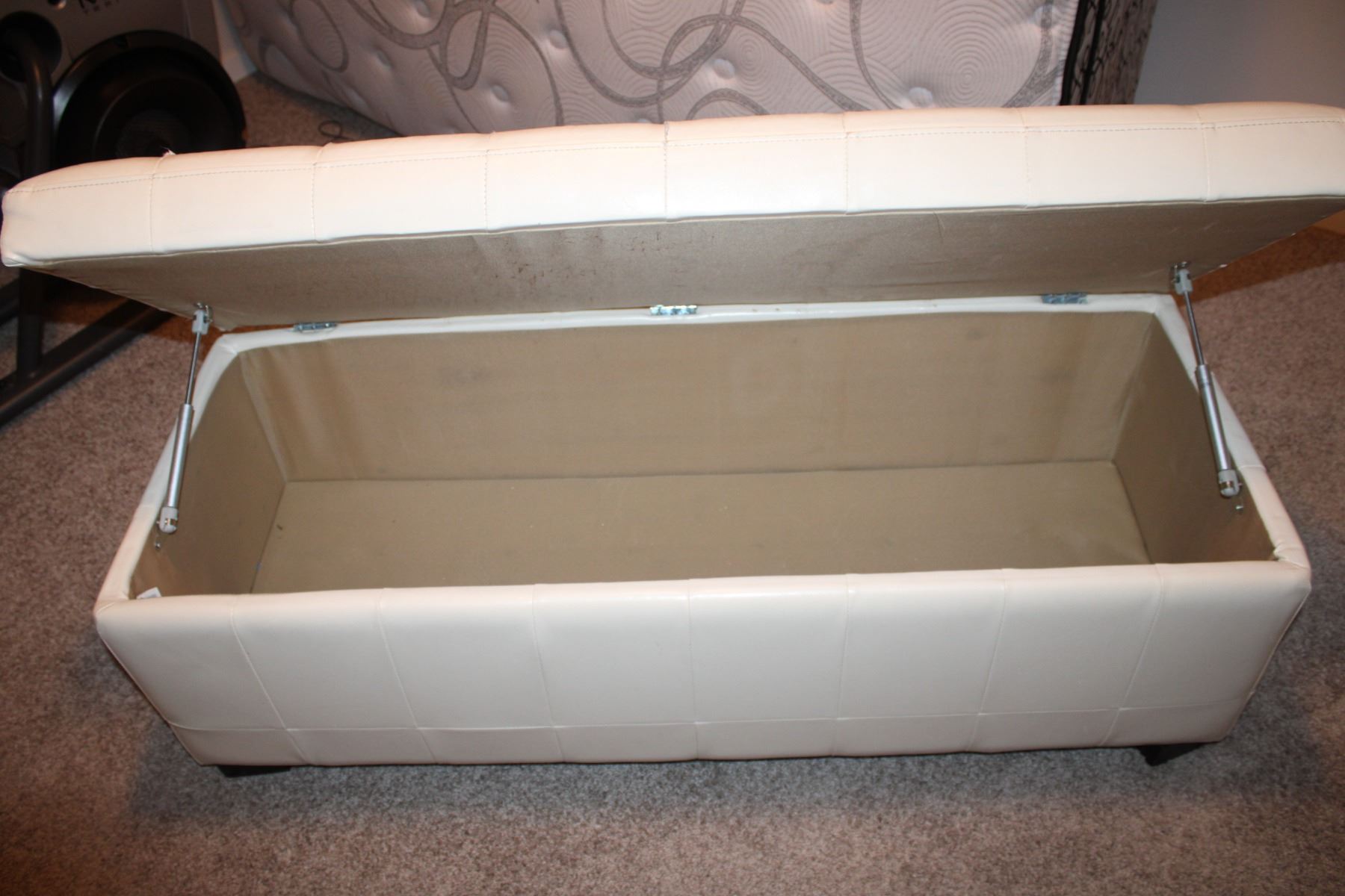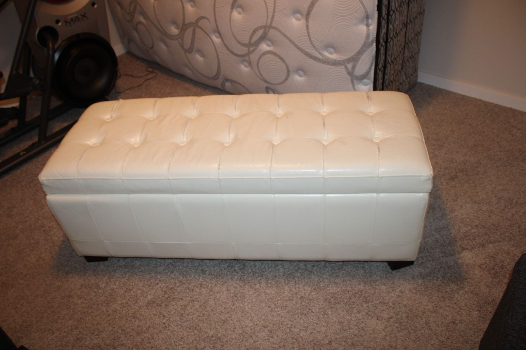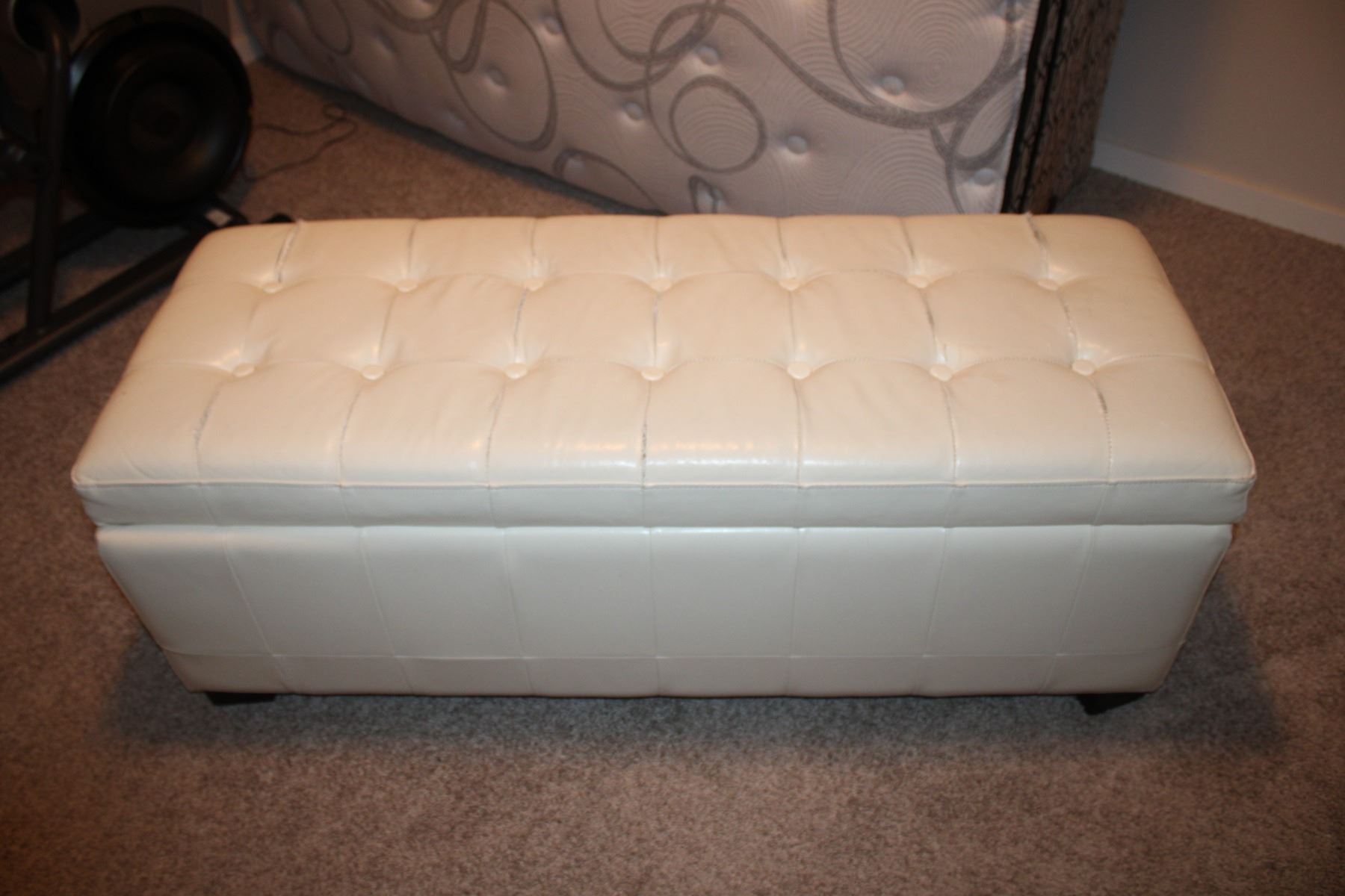 White leather Storage ottoman (some seams open) 48" W x 19" D x 17" T
