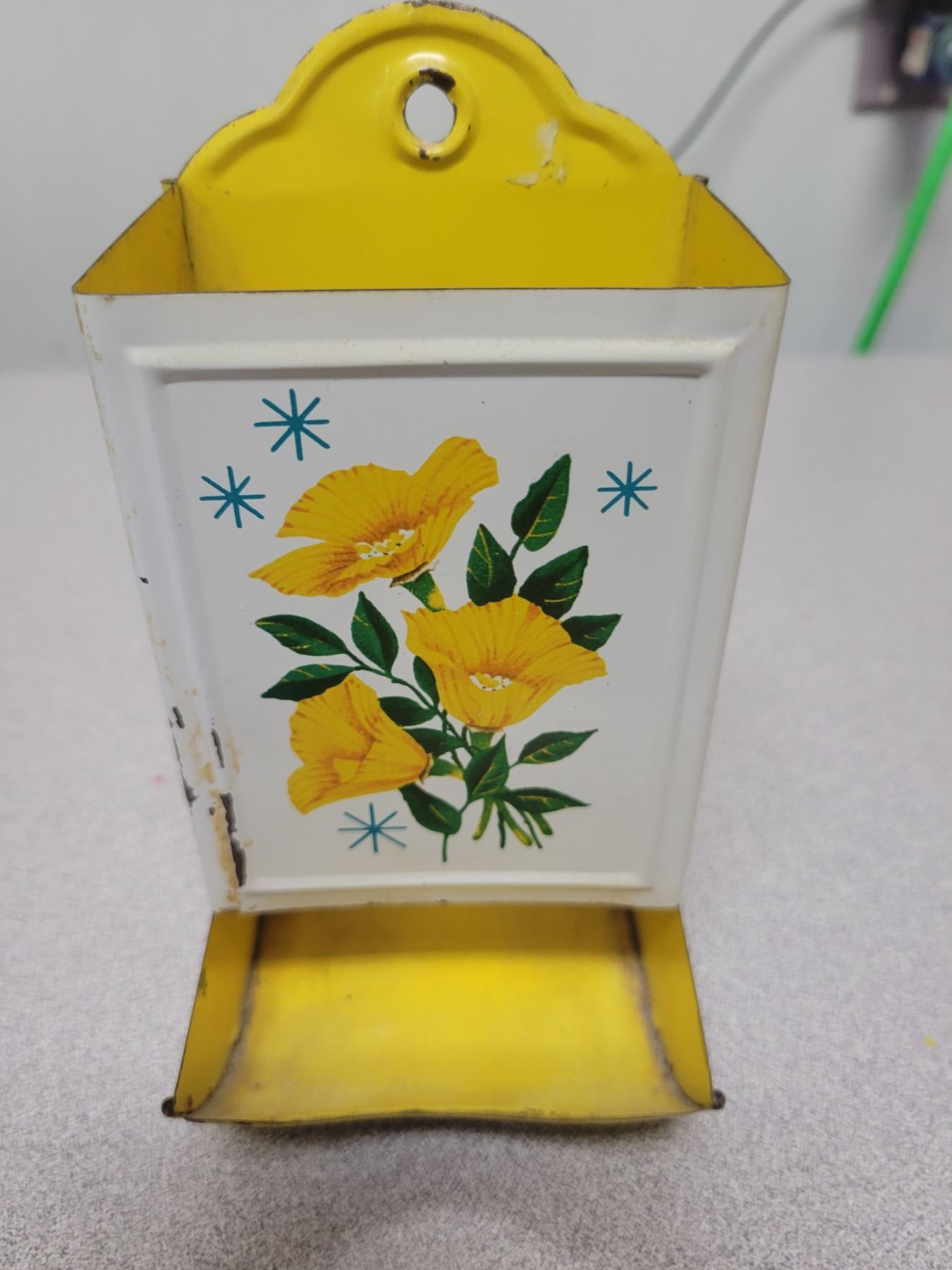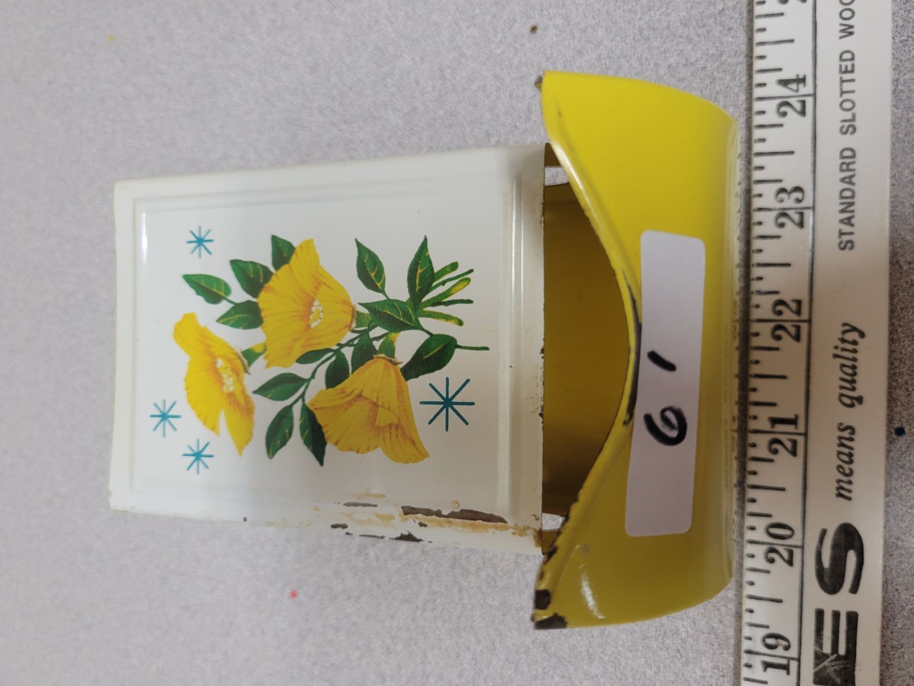 White match box three yellow flower pattern