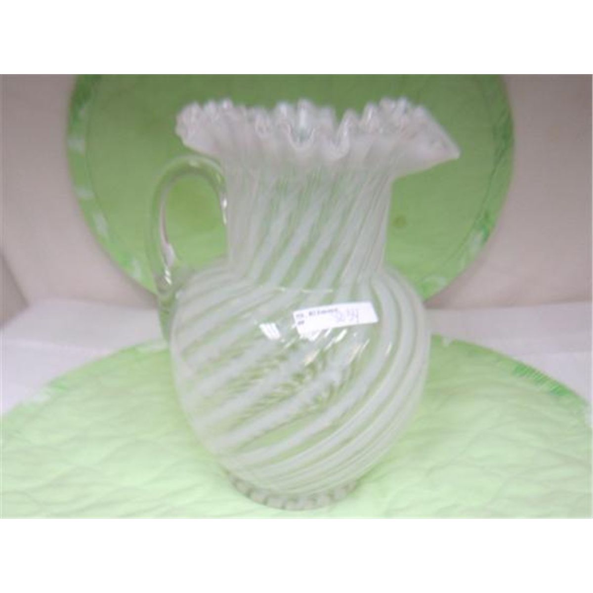 White opalescent swirl ruffled top pitcher - 9 1/2" - applied handle